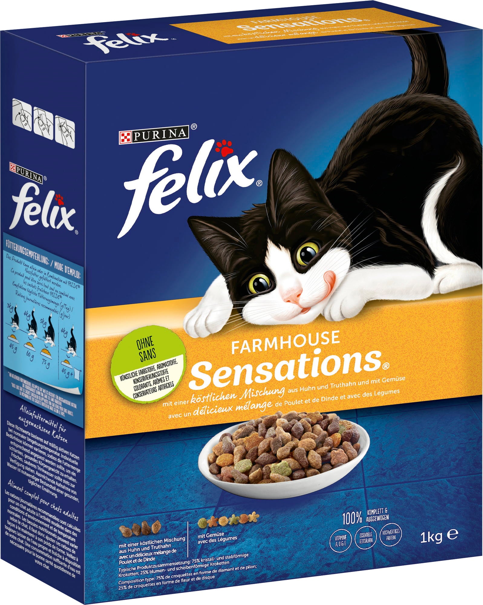 Felix is dedicated to offering your pet only high-quality ingredients. Therefore, Farmhouse Sensations contains no artificial flavours, colours, or preservatives, and is enriched with essential fatty acids and high-quality proteins.