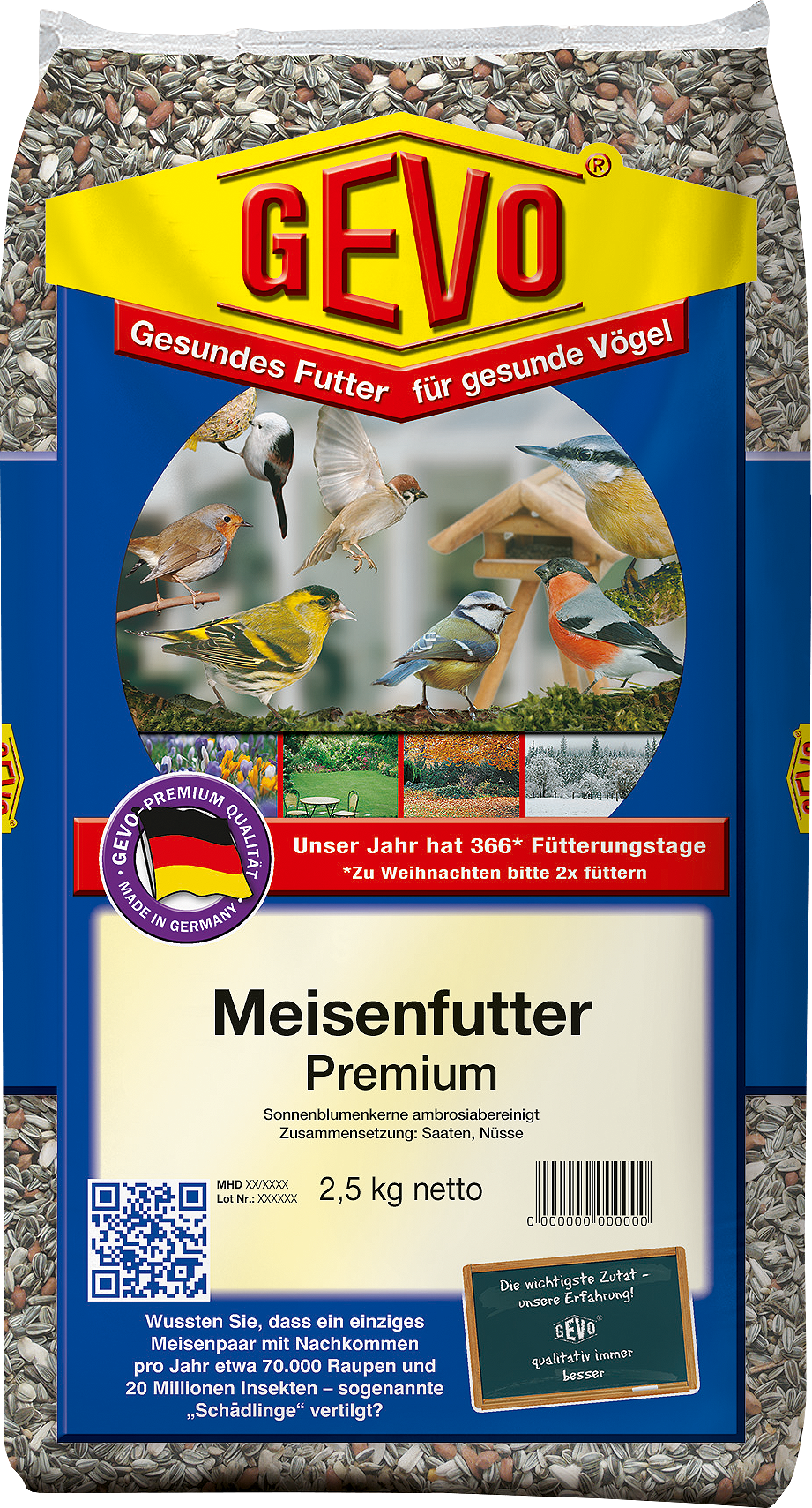 This classic bird feed features a high-calorie blend of premium nuts and seeds, specifically formulated for seed-eating birds and provides them with valuable nutrients.