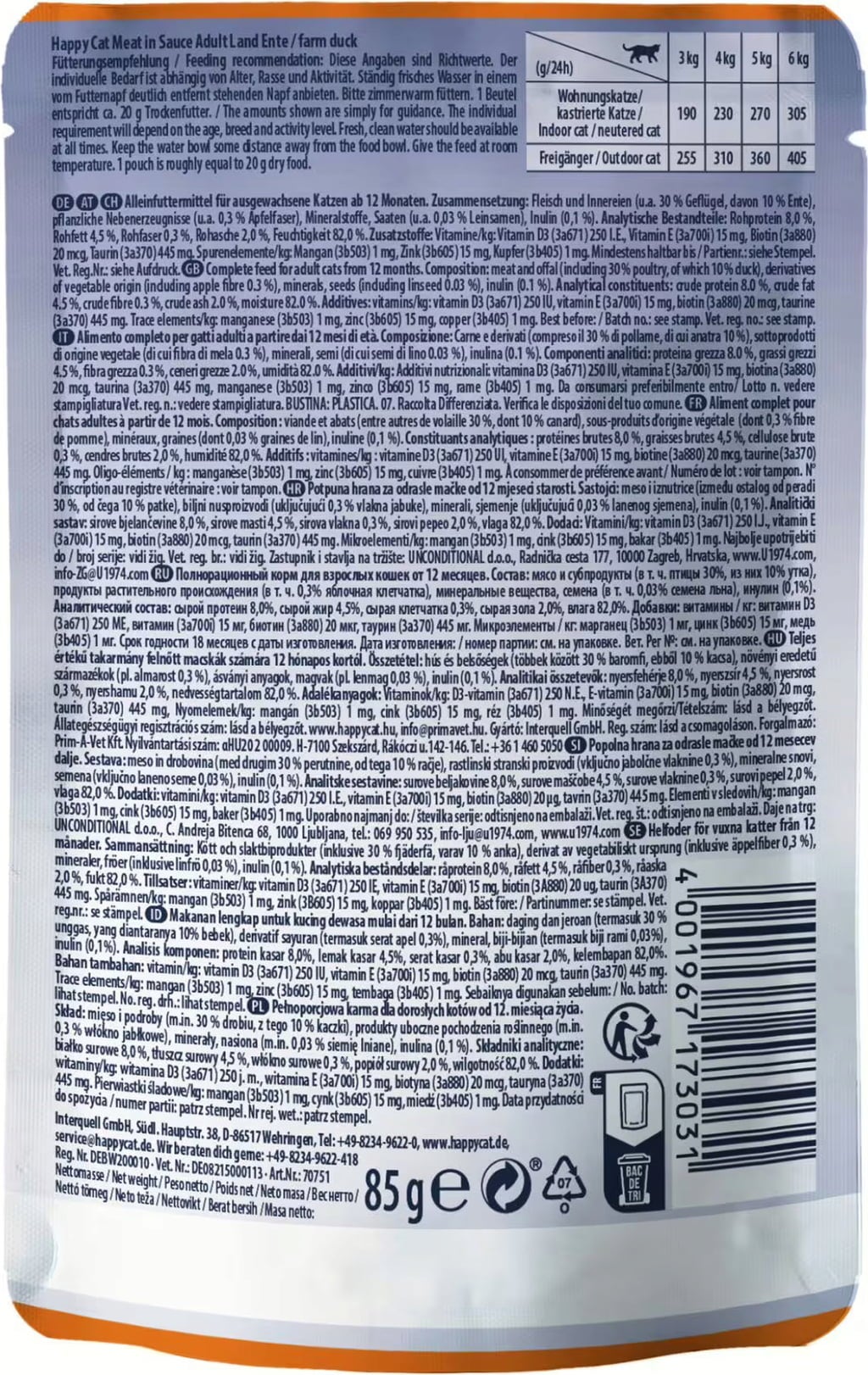 Happy Cat Meat in Sauce Duck Fresh Pouch, 85 g