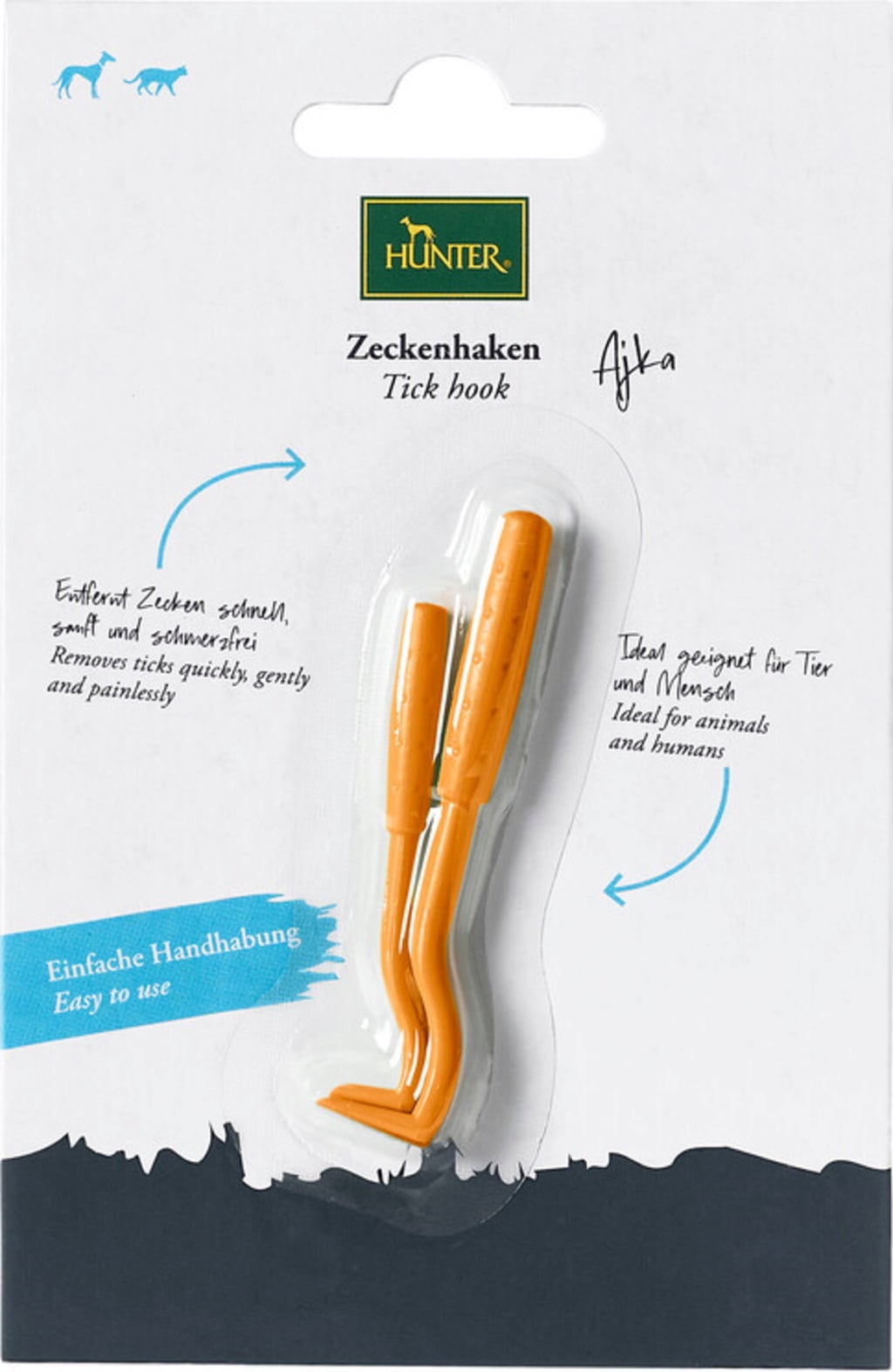 Ticks can become active at temperatures as low as 7 °C, meaning they can be a nuisance throughout the year. If your pet has picked up one or more of these pesky parasites, it’s essential to have them removed professionally. Fortunately, the Ajka tick hook by HUNTER makes this process easy! This handy tool can also be used on other pets, such as cats, as well as on yourself and your family members. The pack includes two differently sized hooks to accommodate ticks of various sizes.