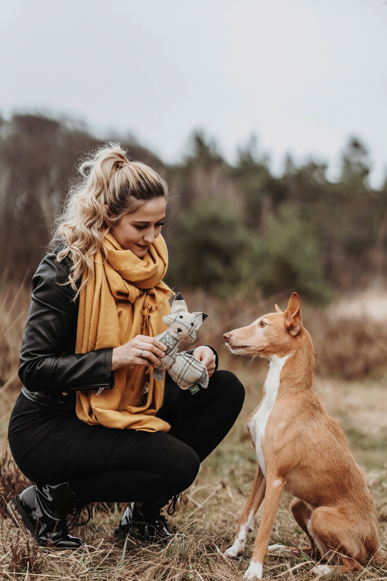 This toy is ideal for cuddling or sniffing games. Furthermore, the fox is made from 100% recycled materials