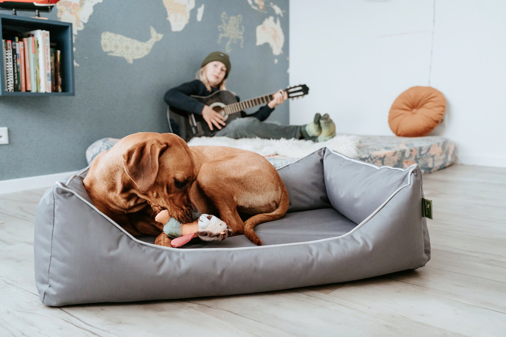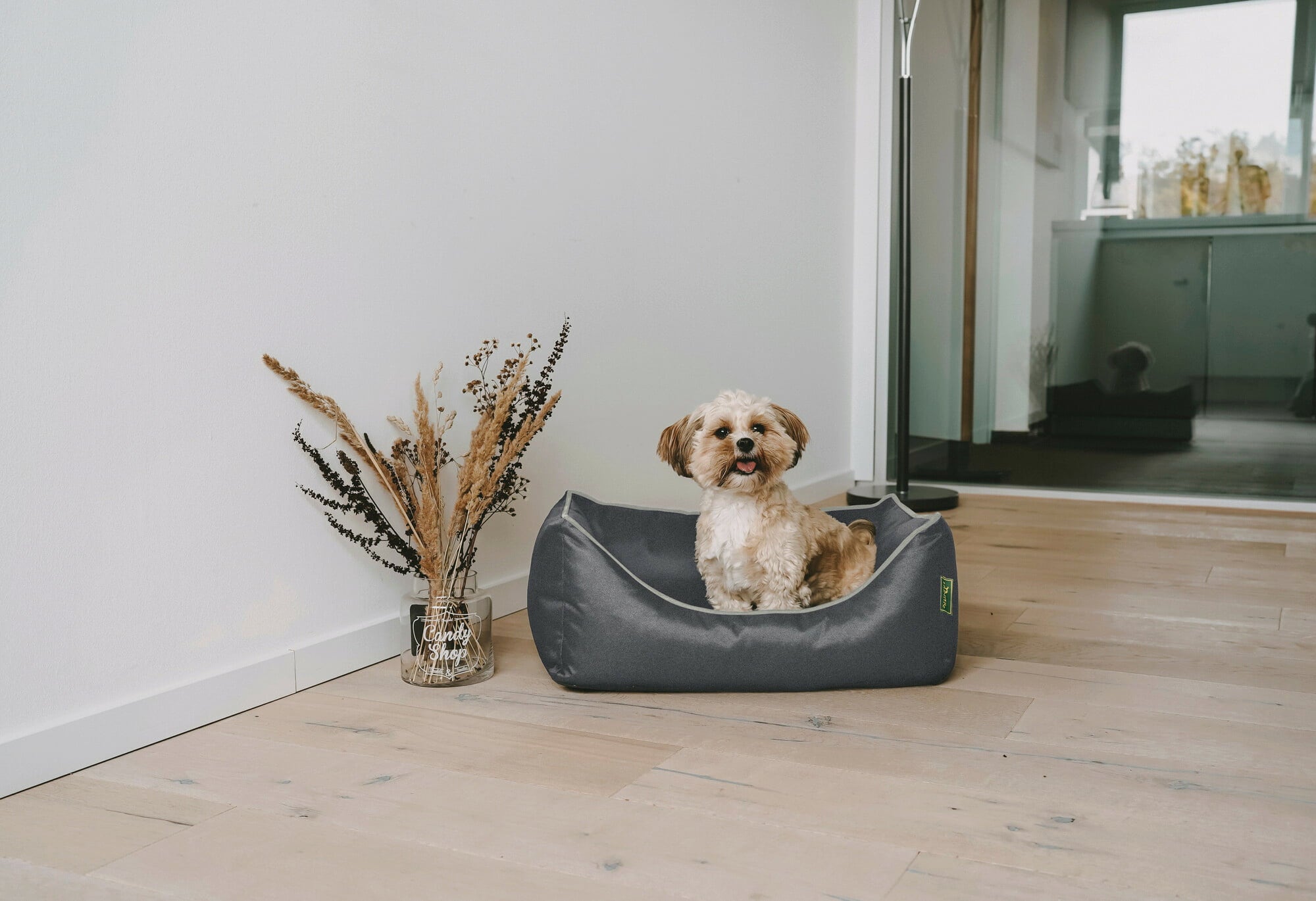 Accidents or spills are no problem—the water-repellent surface remains unaffected and can be easily removed and machine-washed, making it ideal for both older dogs and puppies. Anti-slip studs on the base keep the sofa steady when your dog moves in or out.