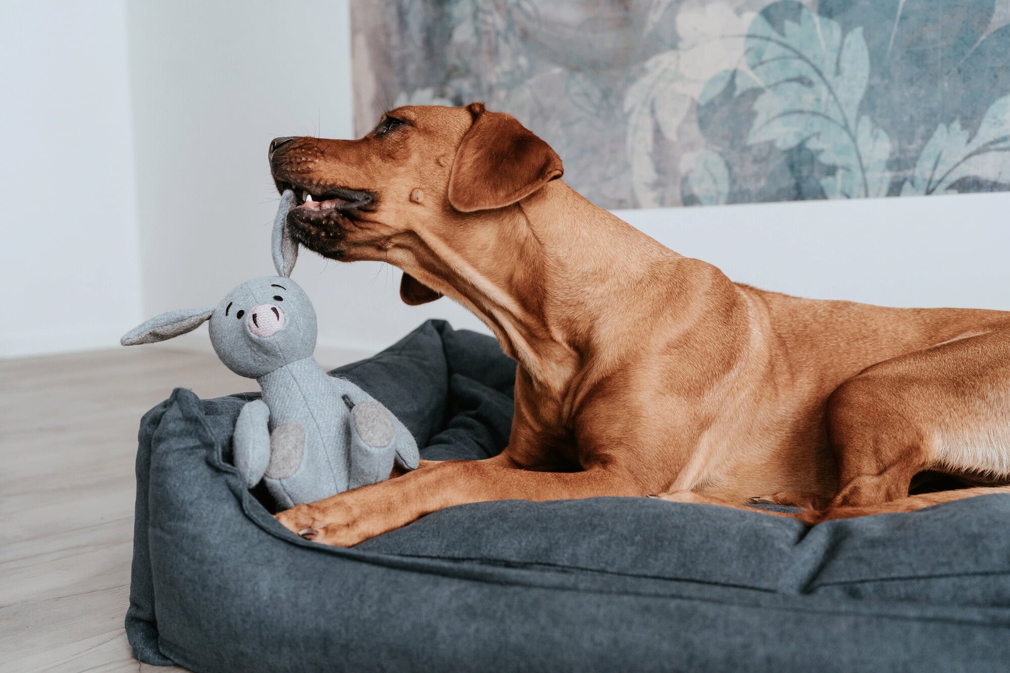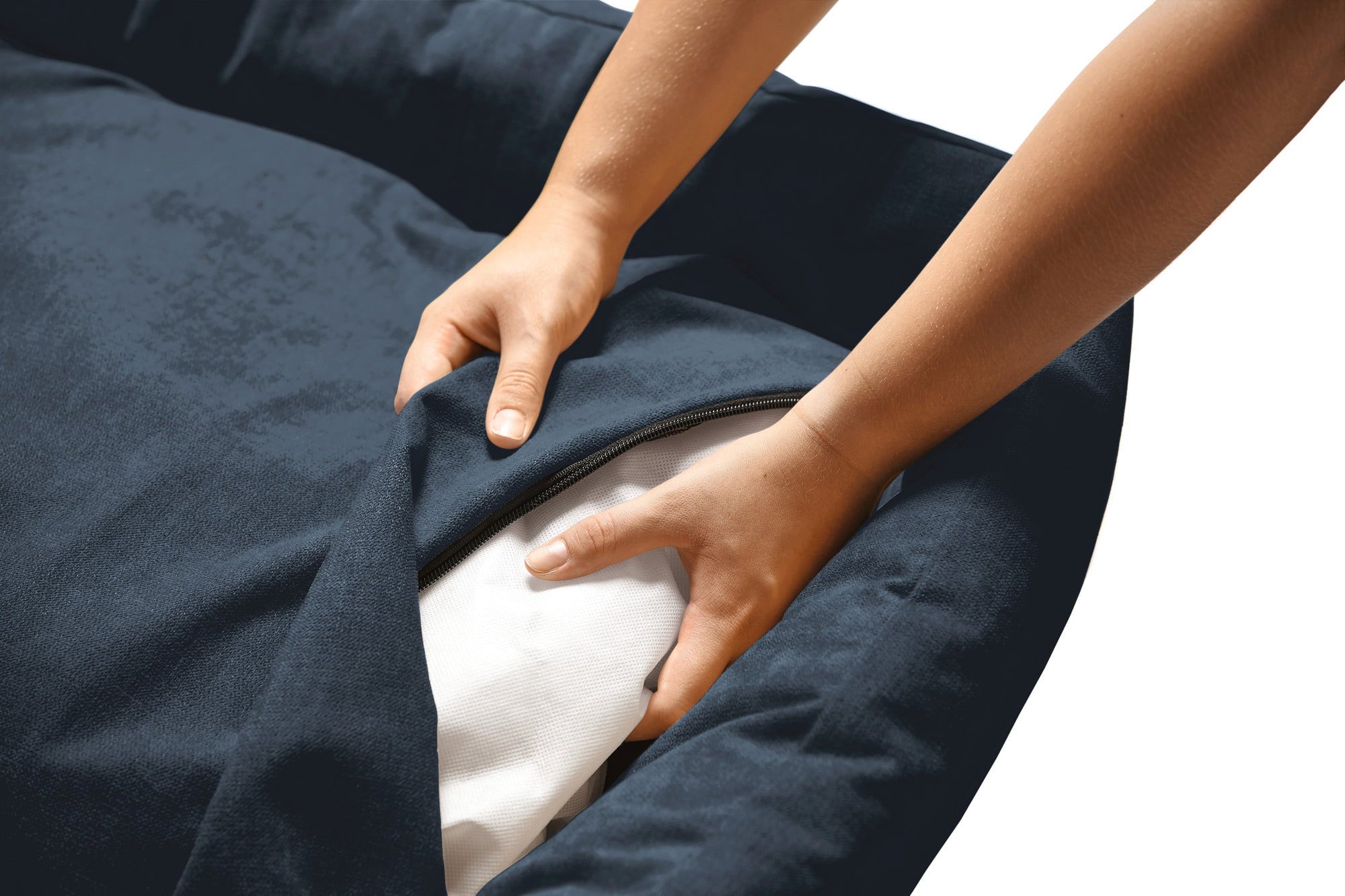 The EIBY dog sofa adds elegance and style to your home. The hard-wearing textured fabric is equipped with innovative EASY CLEAN technology. Thanks to nanoparticles, even stubborn dirt does not penetrate deep into the fabric. With a little water and, if necessary, a mild detergent, stains are removed in seconds. This keeps the dog sofa hygienically clean for a particularly long time - a more efficient and eco-friendly method than washing the entire cover.