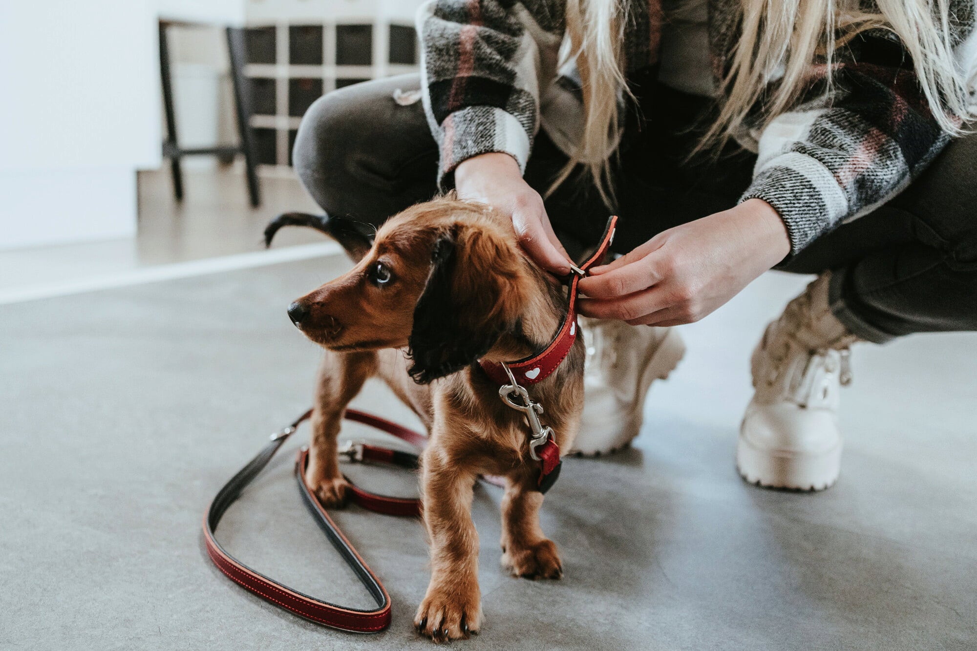 Hunter Love Cowhide Collar - Red/Black , XS-S (37)