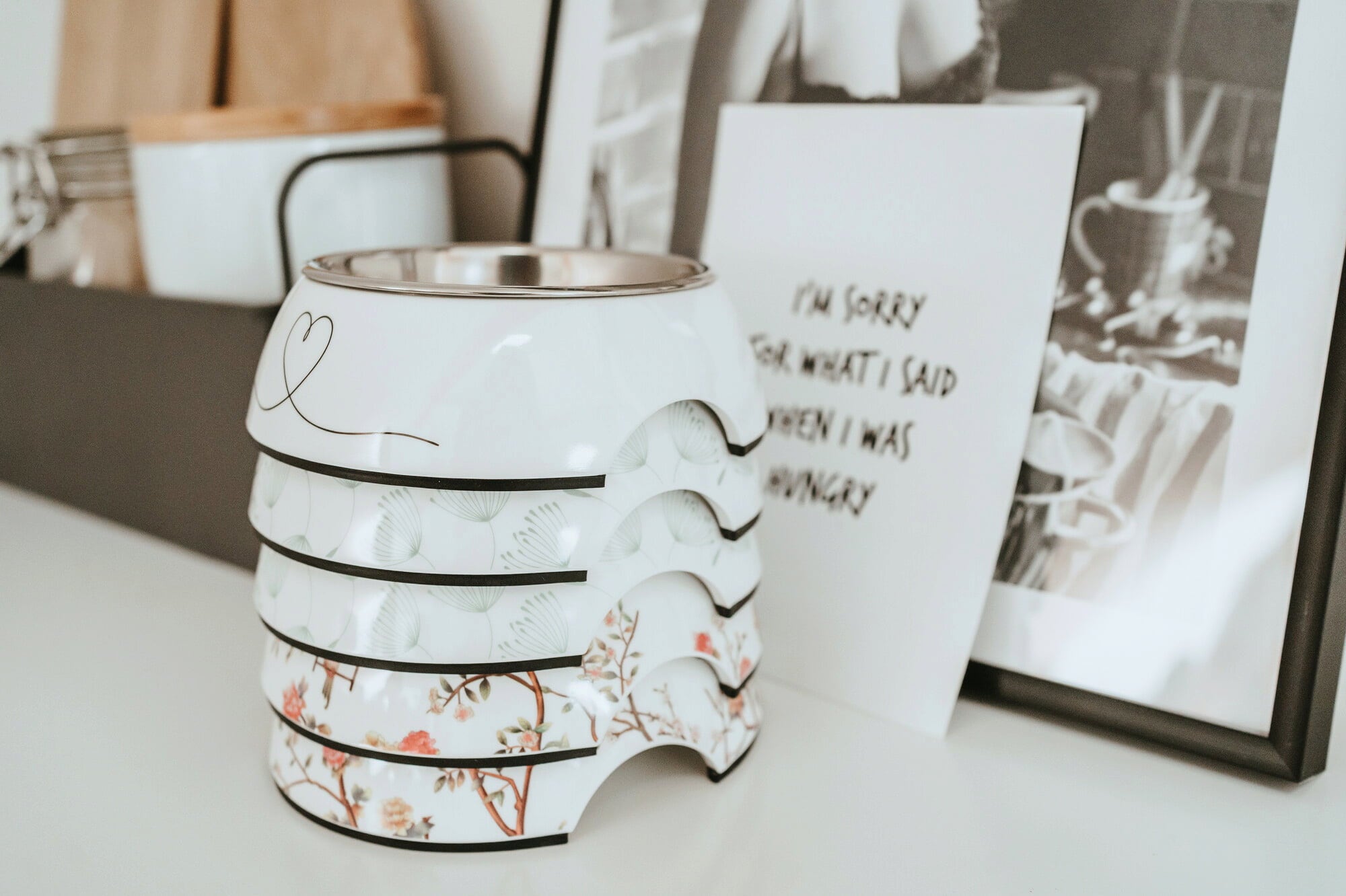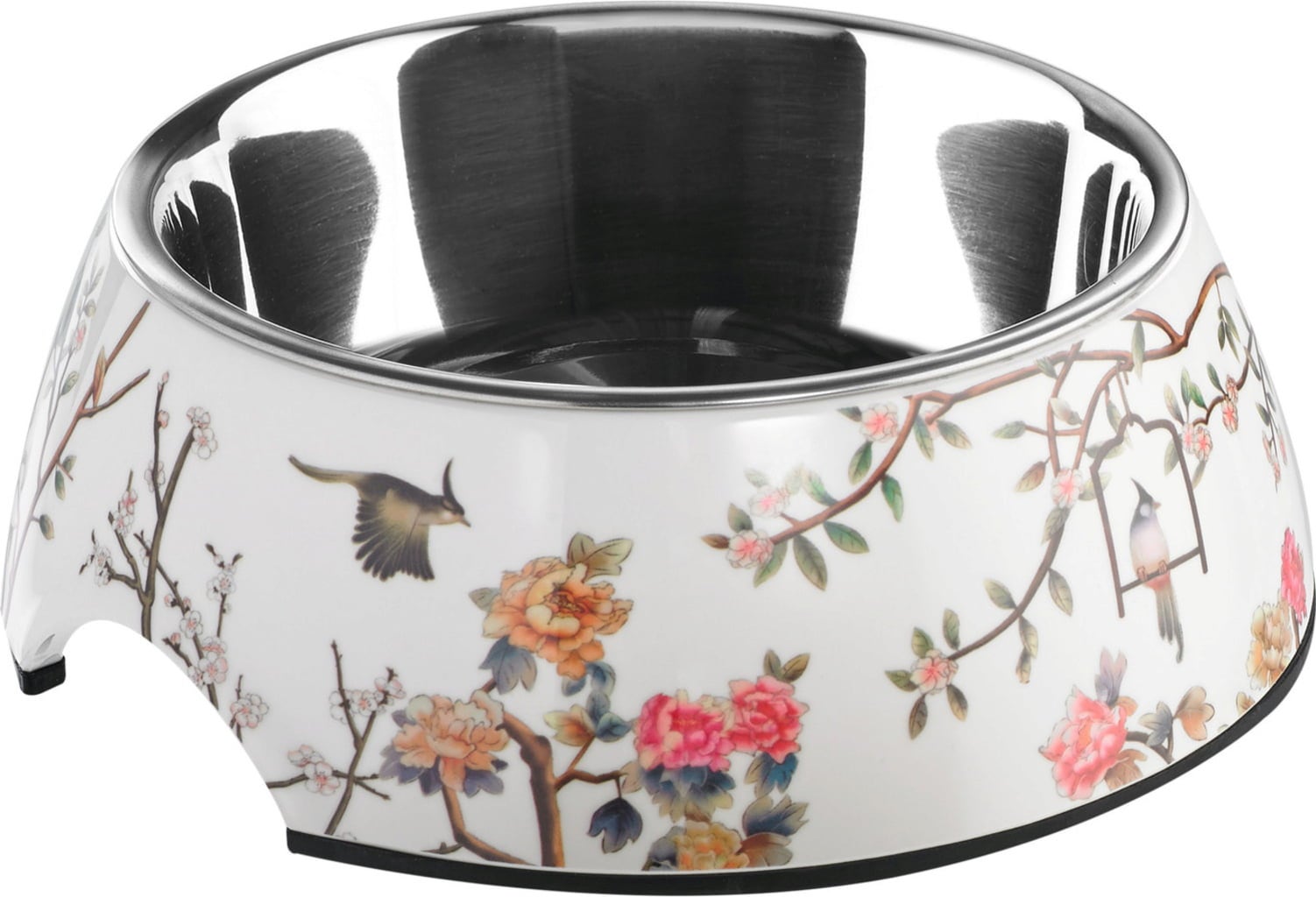 In addition to the melamine body, the drinking and feeding bowl also contains a removable stainless steel inner bowl. Both bowls are easy to clean by washing them out with water or putting them in the dishwasher.