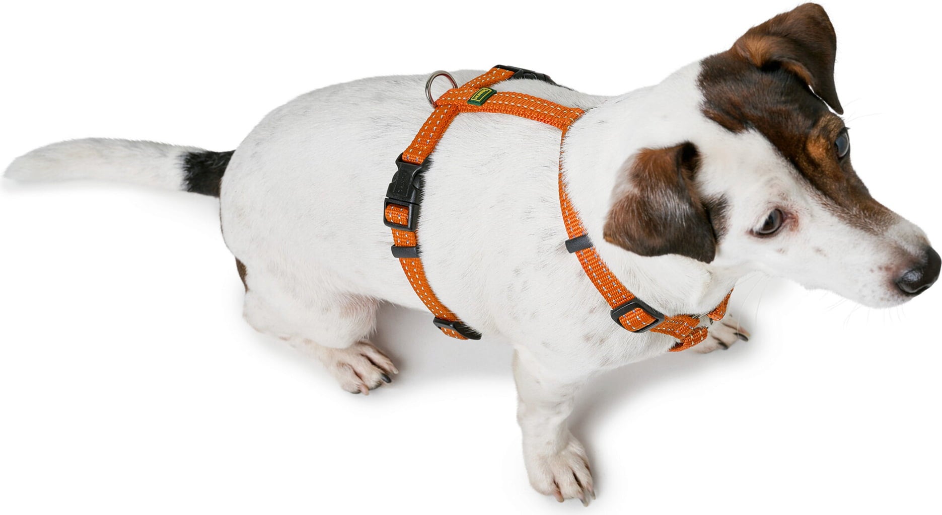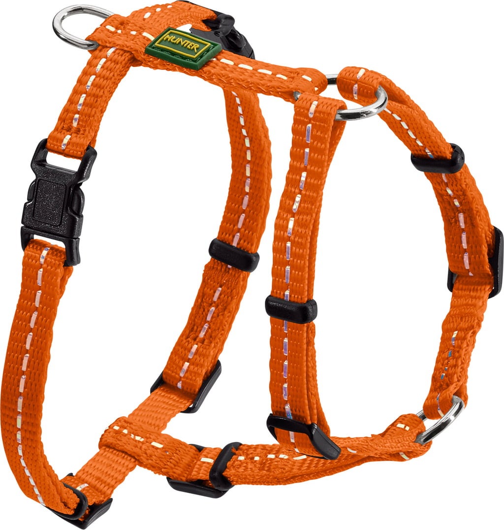 With this chest harness, Hunter has focussed on the smallest of our four-legged friends. The design is specially adapted for puppies and smaller dogs. The bright colours are perfectly accentuated with great reflective stripes. Made from robust nylon and with an infinitely variable adjustment system, it is ideal for everyday use.