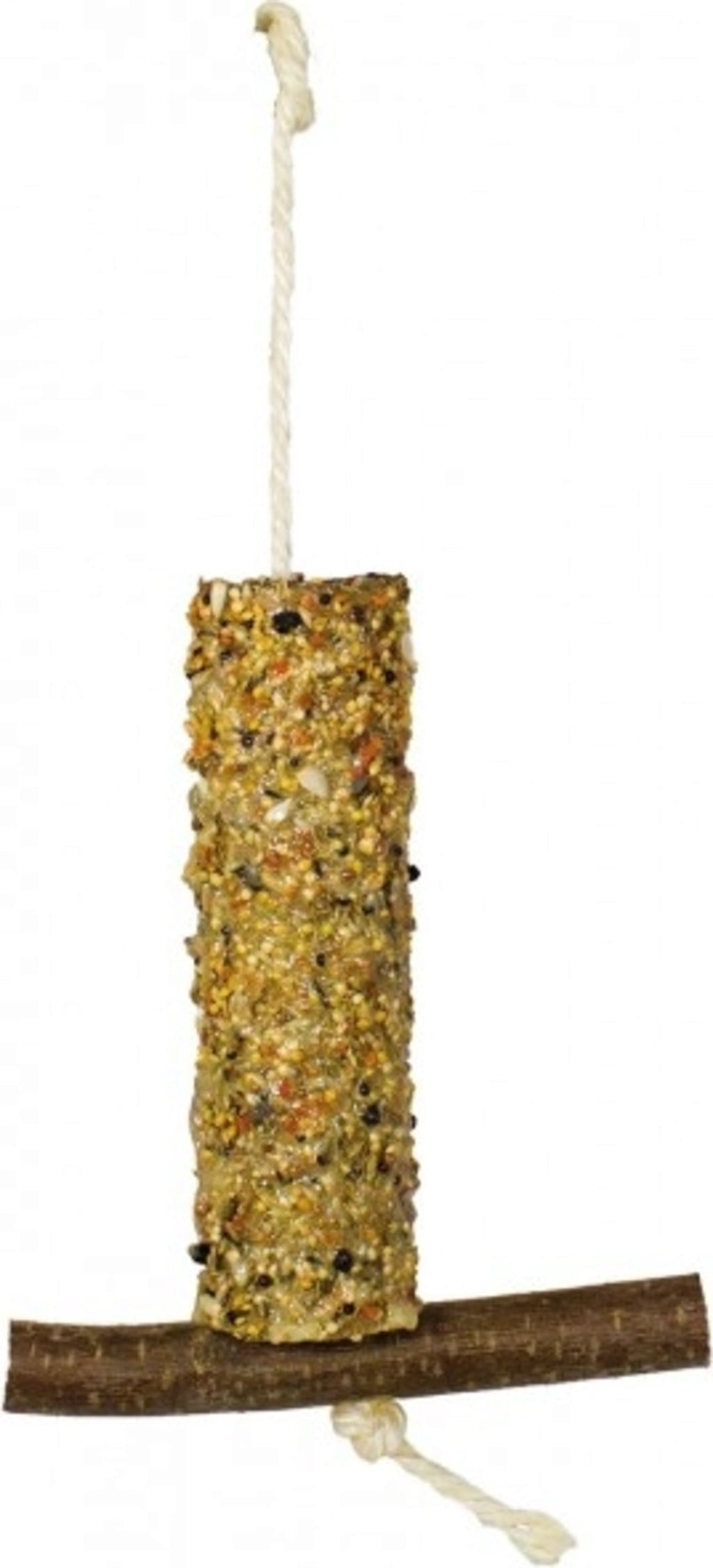 No bird can resist this! 100 percent natural and packed with a variety of tasty ingredients like millet, berries, and oyster shells, this treat swing brings delightful variety to the aviary. Additionally, swinging is great fun, while pecking at the untreated wood supports the natural wear of their beaks.