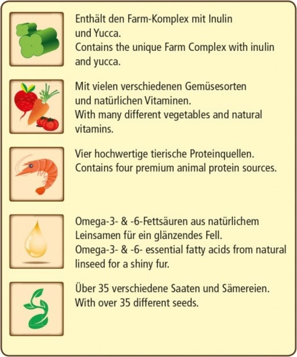 - Supports the natural function of intestinal flora through Farm Complex with prebiotic inulin from the root of the parsnip