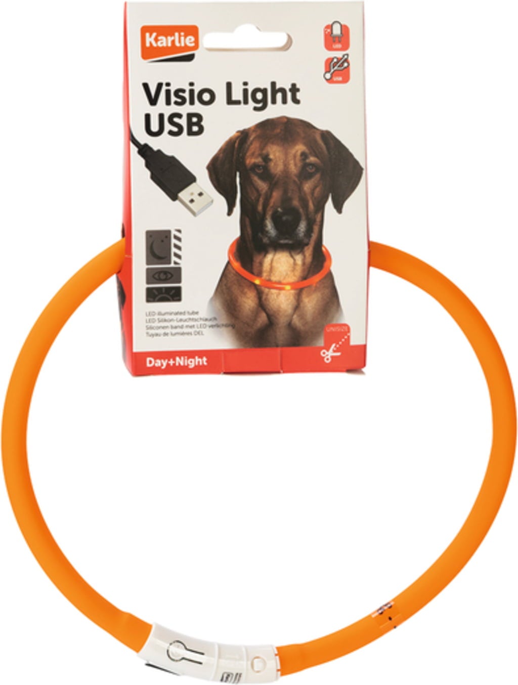 Visio Light LED tube collar by Karlie brings light to the darkness and ensures your dog's visibility in poor conditions – up to an impressive 500 metres! The collar is equipped with a Li-Ion battery, rechargeable via a USB cable, so no batteries are needed to get this collar glowing.
