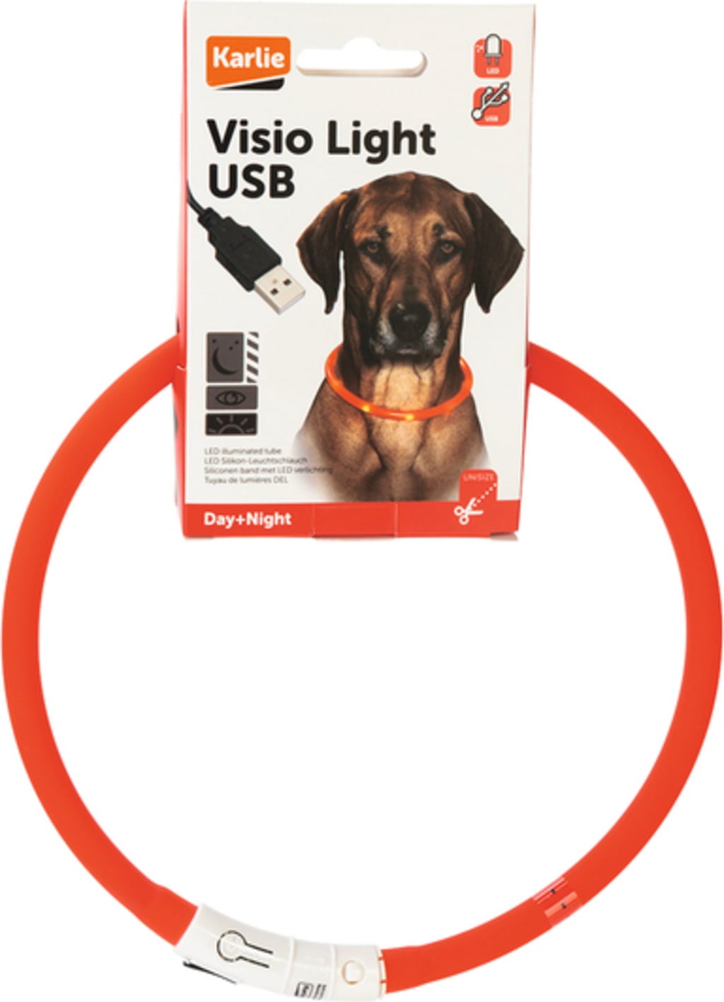 Visio Light LED collar by Karlie brightens up the dark and ensures your dog's visibility in poor lighting conditions – up to an impressive 500 metres! The collar features a Li-Ion battery that is charged via USB cable, so there's no need for batteries to make this collar glow.