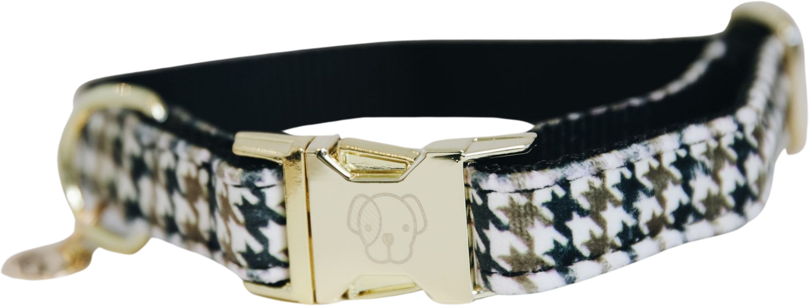 A nice houndstooth pattern for a stylish dog. The material mix of soft microfiber fabric on the outside and robust nylon inside make it robust and comfortable. Combined with high-quality metal fittings, the pied-de-poule pattern is very elegant. Finished with a delicate logo metal plaque and badge.