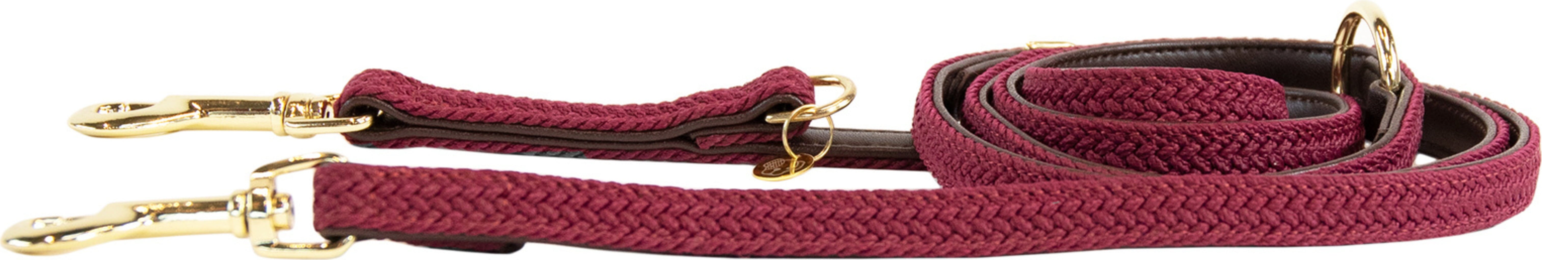 The Plaited Nylon Dog Lead features a classic, elegant design and is carefully made with high-quality materials. It is part of the Plaited Nylon collection which includes the Plaited Nylon halter and dog collar. The hook and fasteners are made of gold-coloured fittings. With triple adjustment option.