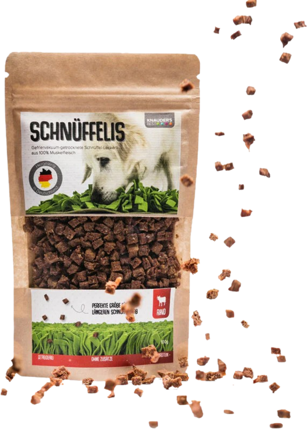 These savoury treats are not only an irresistible snack and reward for your dog; they are also the perfect addition to the sniffing toys by Knauder's Best. Hide the small treats and let your dog find them. This is not only a lot of fun but also promotes your pet's mental and physical fitness.