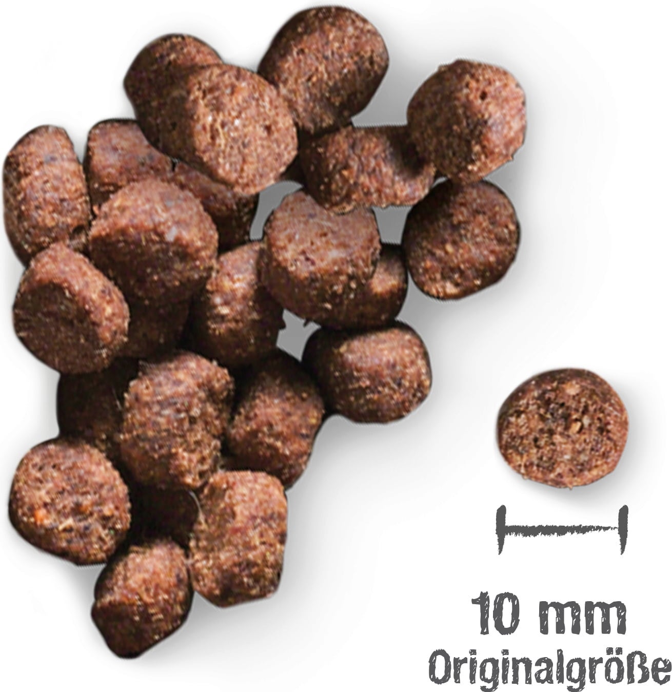 30 % Fresh poultry meat, 23 % Low-ash dried poultry protein, Rice, Corn, 9 % Fish meal from sea fish, 4 % Dried apple pomace, Hydrolysed poultry liver, Malted rye, Dried egg, Ground marine zooplankton (2,5 % Krill), 2,5 % Oat bran, Inactivated and dried brewer's yeast, 1,3 % Chia seeds, Poultry fat, Sodium chloride, Potassium chloride, Chicory inulin
