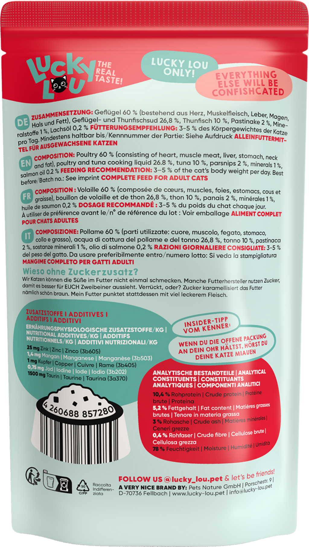 Lucky Lou Adult poultry & tuna pet food by Lifestage, 125 g