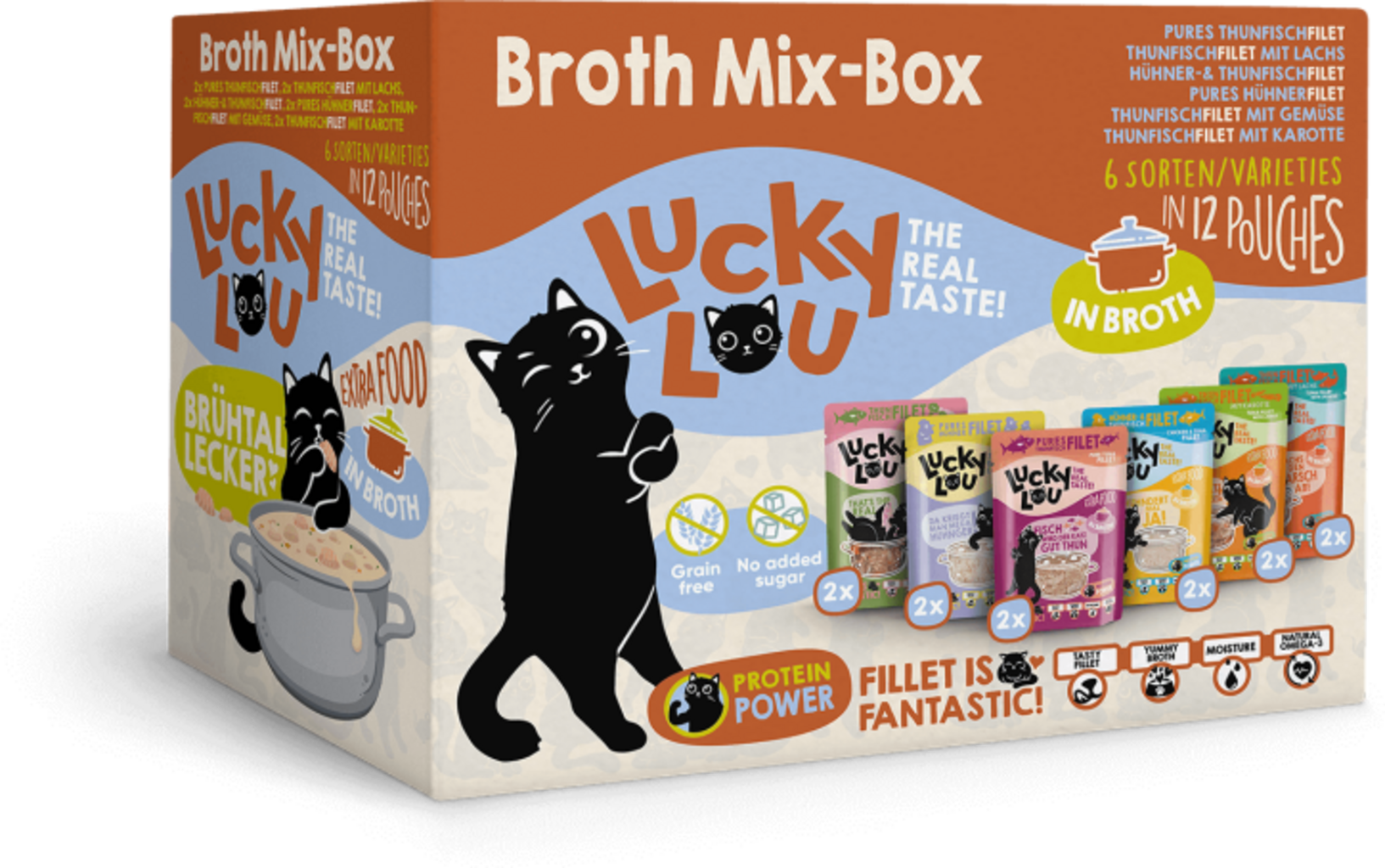 Lucky Lou Extra food pouch broth mix box 12x70g, 840 g