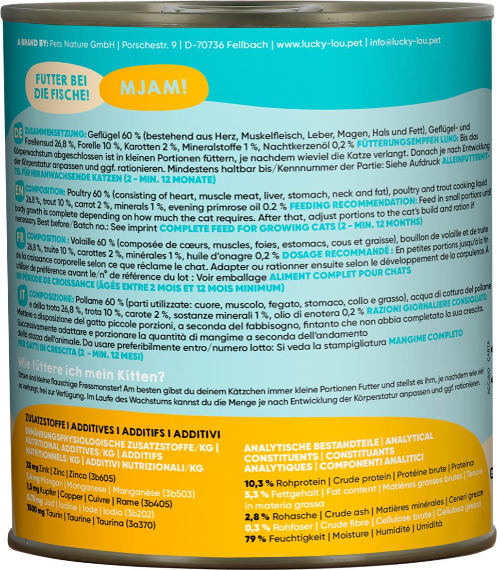 Lucky Lou Lifestage Kitten Poultry & Trout, 800 g
