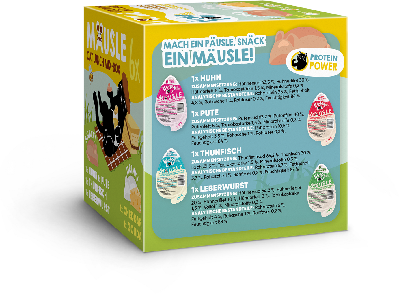 The more Mouse Morsels, the merrier! This 6-pack contains 6 different varieties, adding variety to your cat's menu. Featuring 4 x pâté and 2 x drink snacks, it caters to every cat's taste and offers delightful flavour with select ingredients.