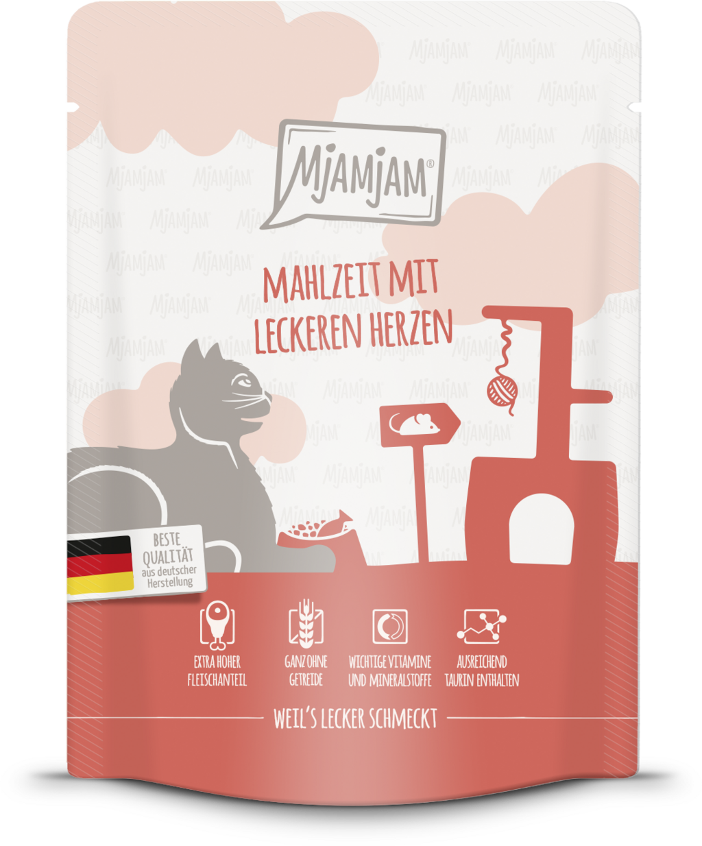 Mjamjam Portion Bags pamper your cat with rich flavours, unmatched quality, and a touch of love. Your little tiger will enjoy a wholesome meal made with fresh beef and delicious hearts, enriched with taurine to support their health and well-being—ensuring your feline friend gets everything they need.