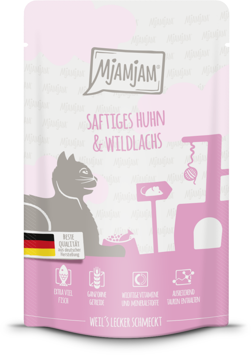 From the very first glance, it’s clear that Mjamjam Portion Bags are crafted with an incredible amount of love—and the same goes for their contents! Fresh wild salmon perfectly combines with juicy chicken to make your velvet paw’s taste buds dance with delight. Designed for natural meals in premium quality, because your pet truly deserves the best!