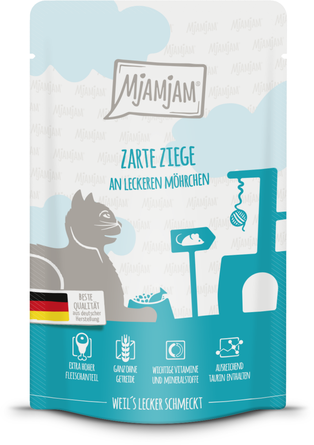 Mjamjam Portion Bags treat your cat to rich flavour, exceptional quality, and a touch of love. Your little tiger will enjoy a wholesome meal made with fresh goat meat and crunchy carrots, providing a naturally delicious and nourishing experience. Enriched with taurine, an essential nutrient for cats, it ensures your cherished companion has everything they need to thrive.