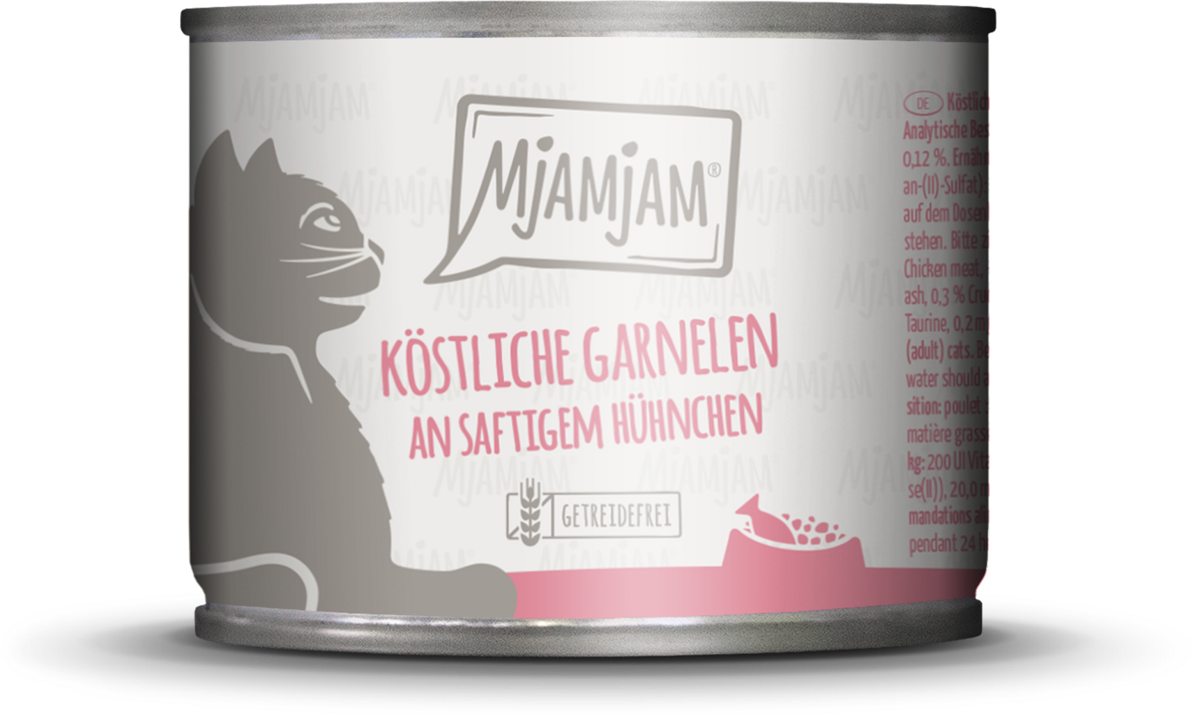 Mjamjam wet food pampers your cat with rich flavour, unparalleled quality, and a touch of love. Your tiger will enjoy a wholesome meal of fresh prawns and juicy chicken, crafted to ensure your feline friend has everything they need to thrive.
