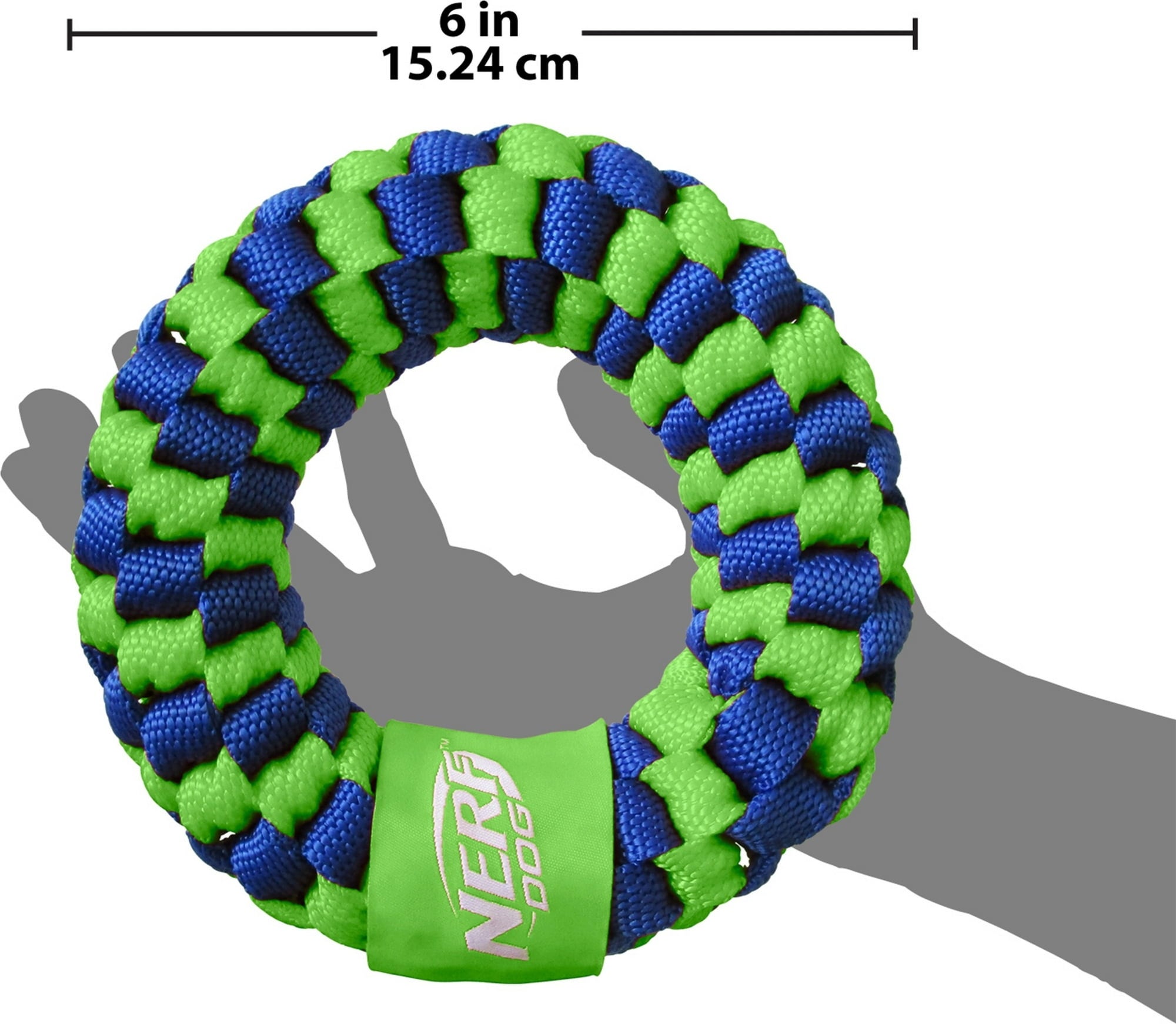 The Braided Ring by Nerf is an ideal toy for training sessions with your dog. It lets you practice impulse control, signalling, and arousal control, or simply enjoy spending quality time together. The sturdy ring is easy for both pets and humans to grip and hold onto. Engage in tugging games to playfully test your strength, channel excess energy through sporting activities, and keep active at the same time!