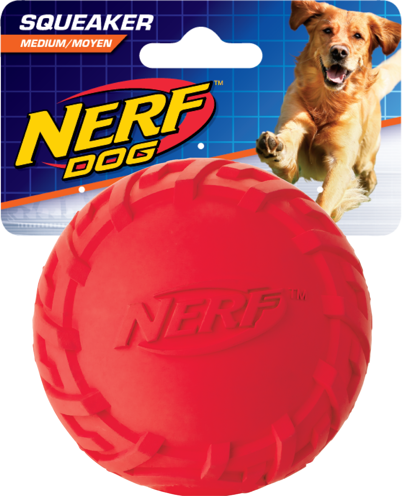 Squeaky ball with tyre profile by NERF! Thanks to the intense colours, your pet can find this intriguing toy even in the most challenging hiding spots. The tyre profile makes it easy to grip and ensures a satisfying chewing experience.
