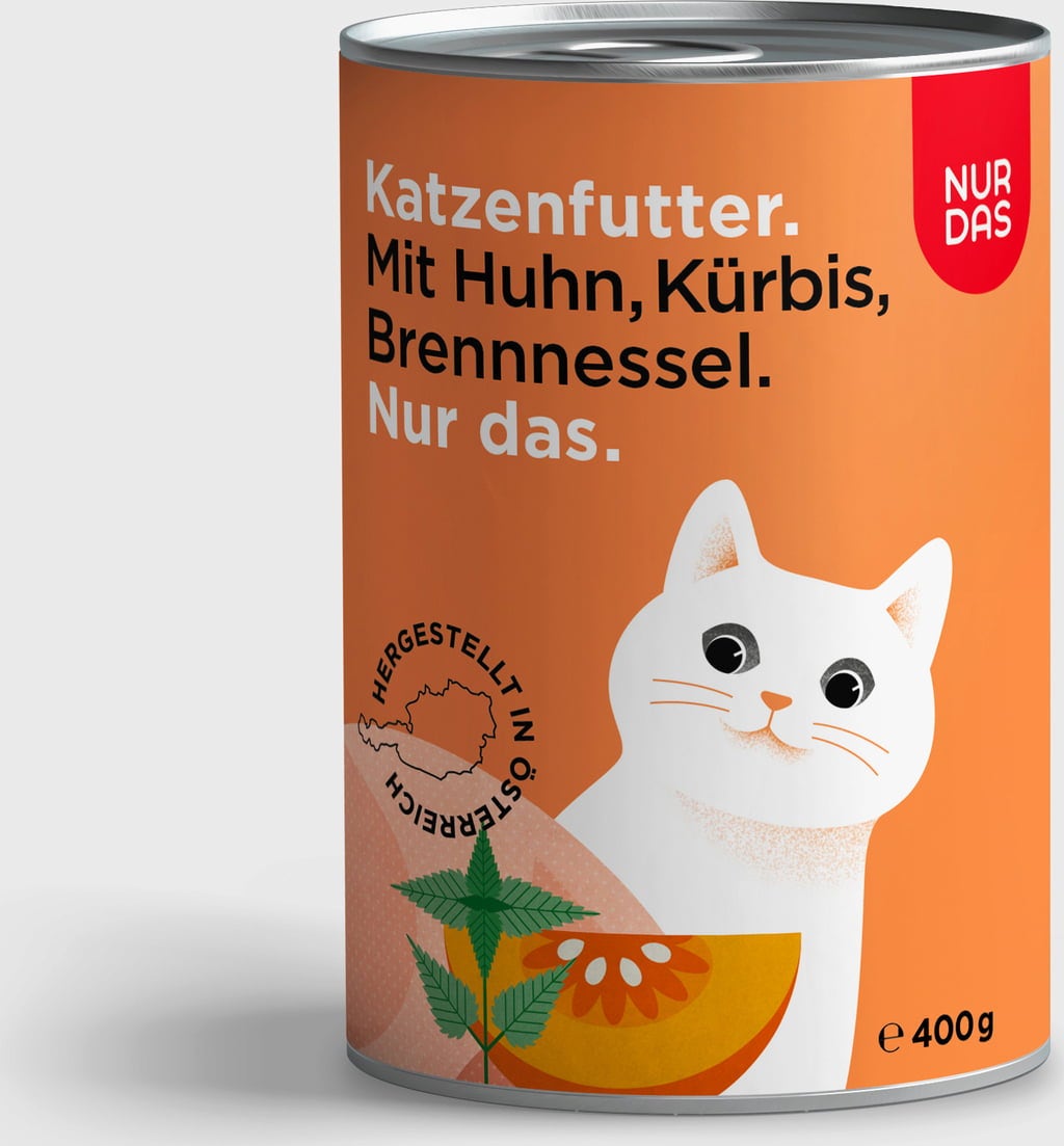 This tin contains a harmonious blend of delicious chicken, nutritious pumpkin, and valuable nettle leaves. The protein and energy content, as well as the nutrient composition, have been carefully balanced to meet the needs of adult cats. A balanced meal that comes without unnecessary ingredients, yet includes everything essential for your cat's well-being.