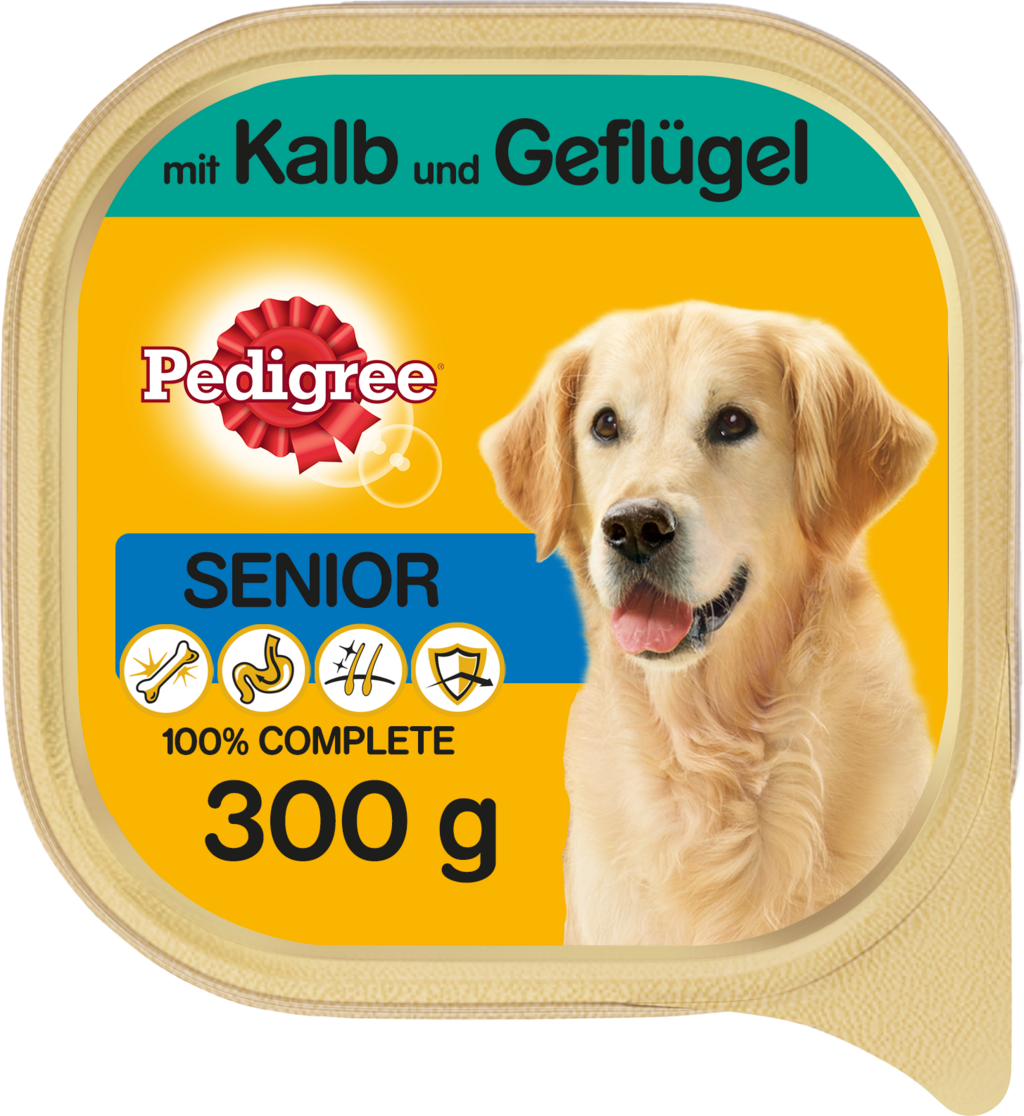 Pedigree Senior wet food is a complete food with a meaty pâté texture, ideal for older dogs. The wet food is a complete meal in itself but can also be offered in combination with dry dog food. Pedigree uses only the best raw materials and ensures a balanced composition - ideal for bones, fur & skin as well as for digestion and the immune system.
