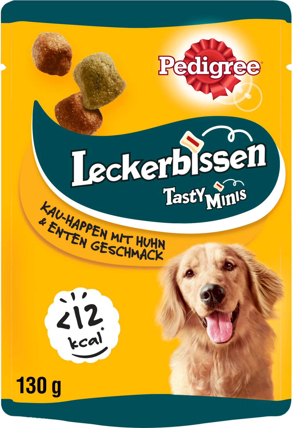 These Tasty Minis Chewing Snacks by Pedigree® are delicious dog treats packed with meaty flavour in bite-sized pieces. The soft texture ensures optimal chewing pleasure. Furthermore, the recipe is enriched with valuable vitamins, minerals and omega-3 fatty acids - a treat with added nutritional value!