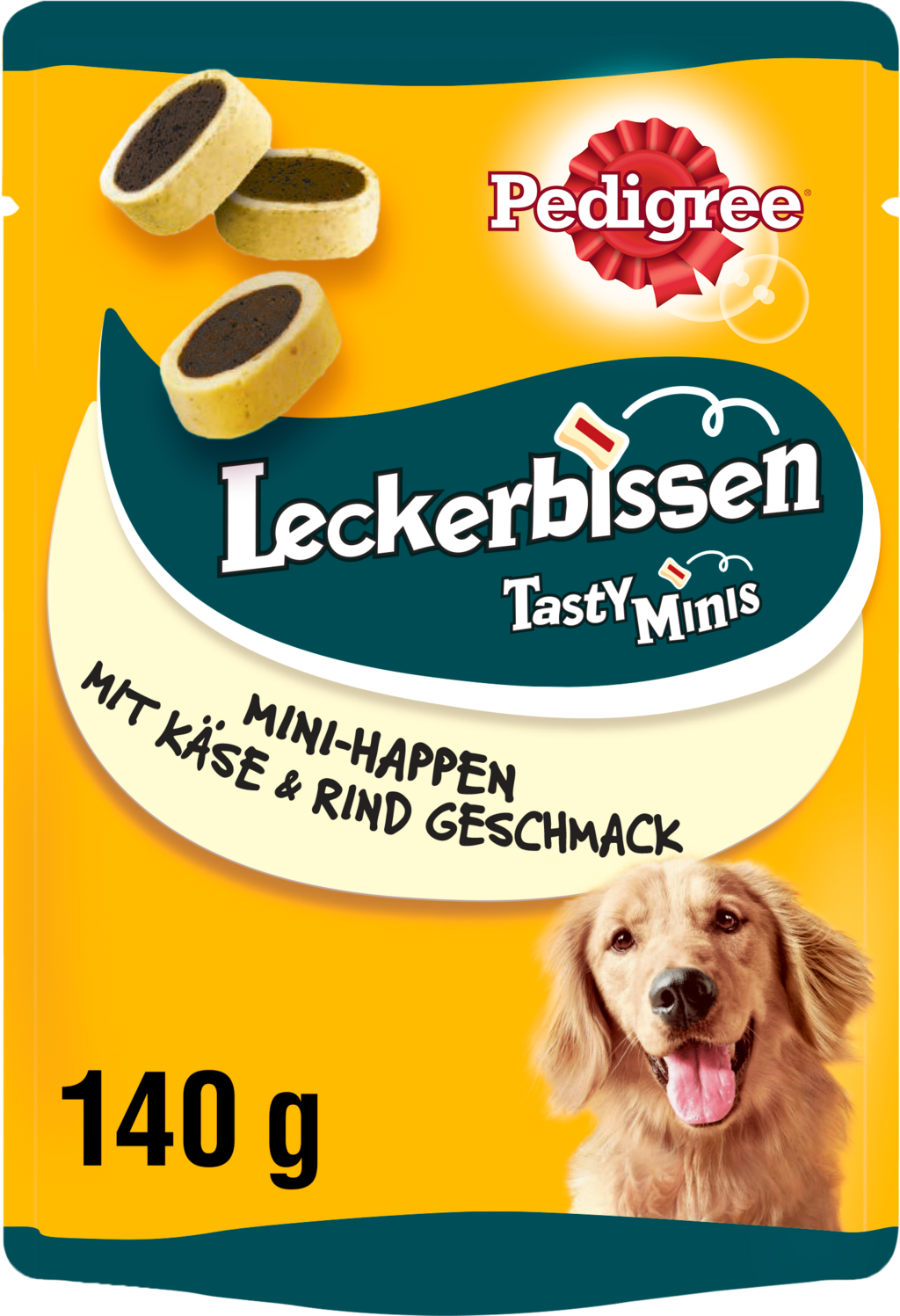 Tasty Minis - the perfect treat for smaller dogs. Pedigree® Tasty Minis is a meaty snack in bite-sized pieces ideal for the smallest dog breeds. The soft texture guarantees optimal chewing pleasure. The recipe is also been enriched with valuable vitamins, minerals and omega-3 fatty acids.