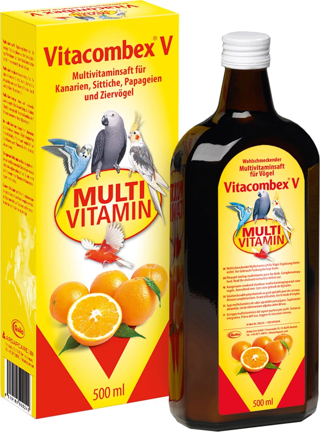 This tasty multivitamin juice has been specially developed for the nutritional needs of ornamental pet birds such as canaries, parakeets and parrots and meets their normal vitamin requirements. It can be given by adding to the regular food or drinking water.