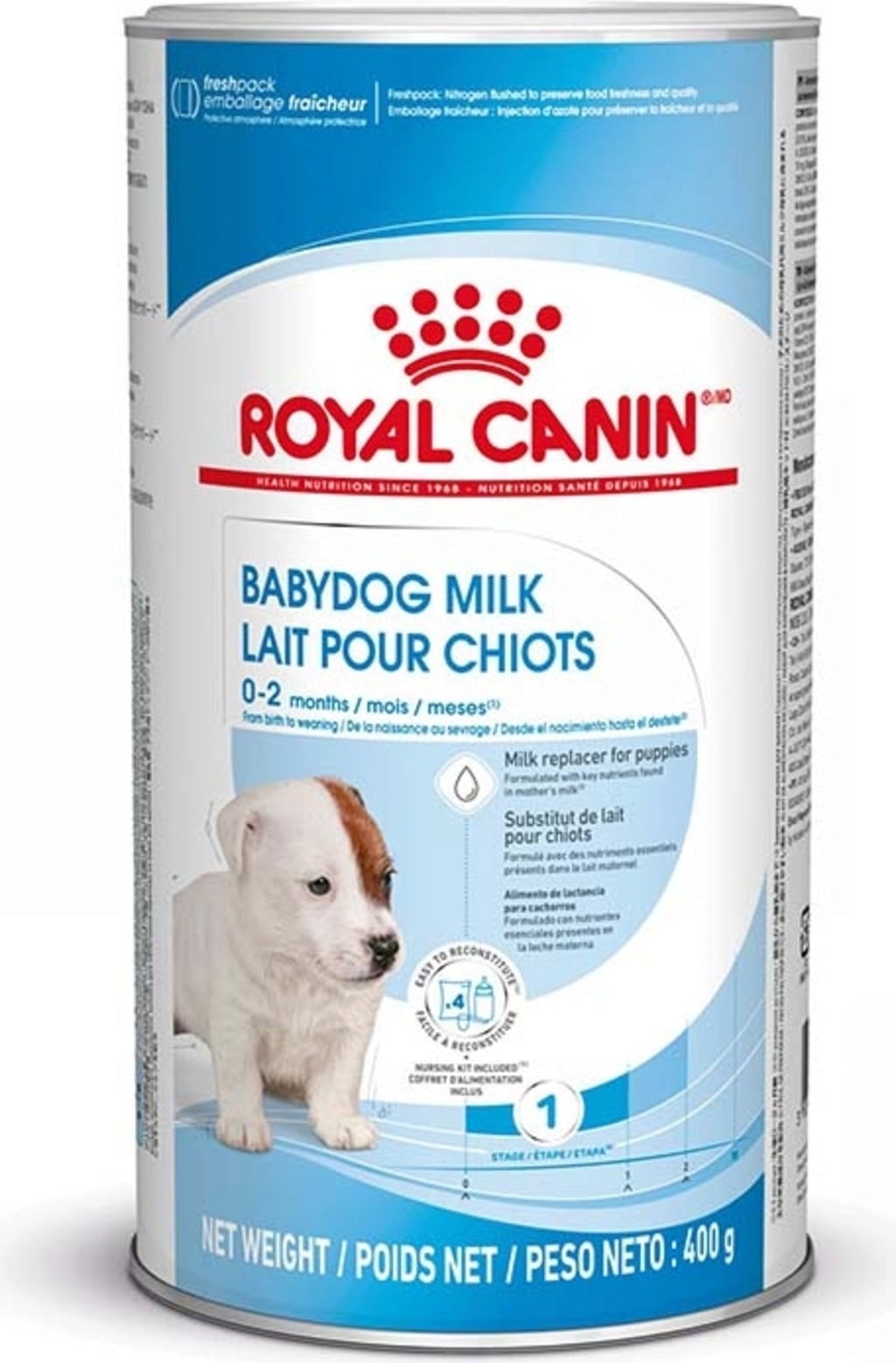 ROYAL CANIN® Babydog Milk is formulated to be as close as possible to maternal milk, with high energy and protein levels to help support your puppy's steady, harmonious growth in its early weeks. This product is suitable for first age puppies from birth to weaning. ROYAL CANIN® Babydog Milk is an exclusive, instant formula that dissolves completely, leaving no sediment. Your puppy's intestinal flora gradually develops over several weeks, so a diet that helps to support a healthy digestive environment is key.