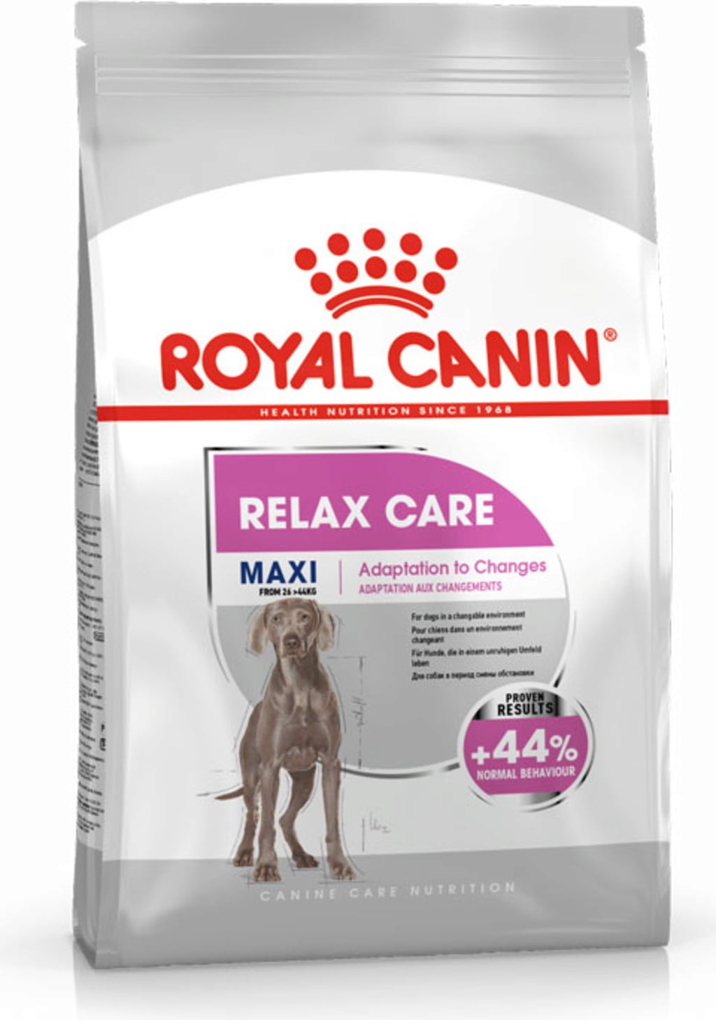 ROYAL CANIN® RELAX CARE Maxi is specially formulated for large dogs weighing between 26 and 44 kg, helping them better adapt to change. This delicious food contains a high-quality, naturally derived nutrient in an easily digestible form, with a carefully controlled composition, quantity, and quality.