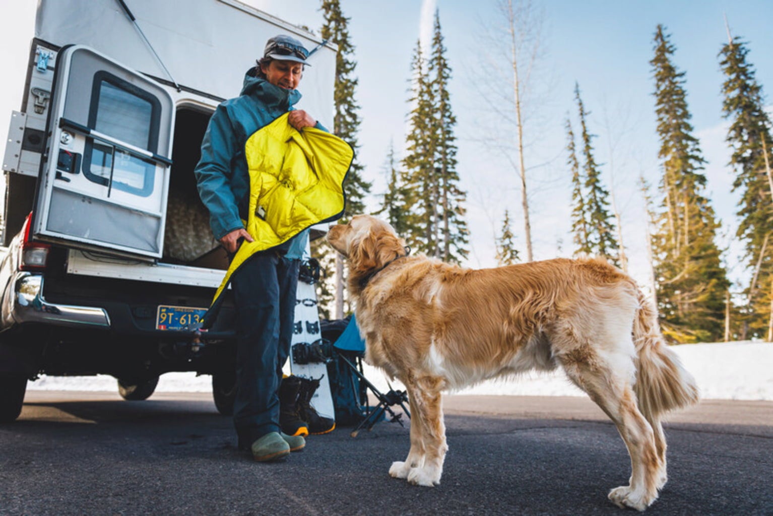 English reviews written for Ruffwear Quinzee™ Jacket Obsidian Black