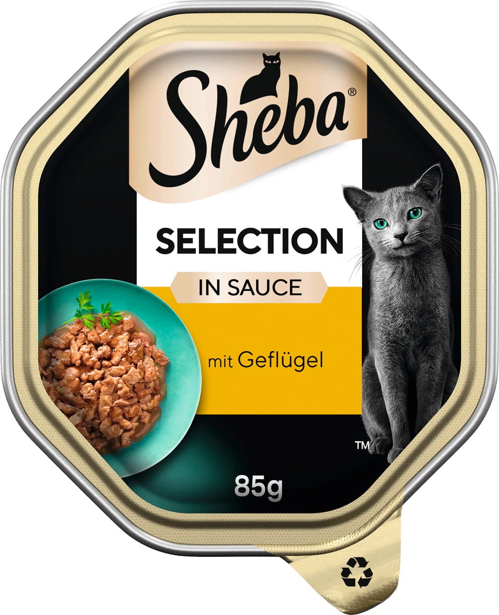 Fine poultry morsels in a flavourful sauce - Sheba Selection lures cats to the food bowl no matter how well hidden and comfortable they are! High-quality recipes with carefully prepared ingredients, succulent meat pieces and zero artificial colours, flavours or preservatives - good for cats to enjoy and their humans to know! The gourmet meal suitable for adult cats is a complete food. The practical tray is quick and easy to open.