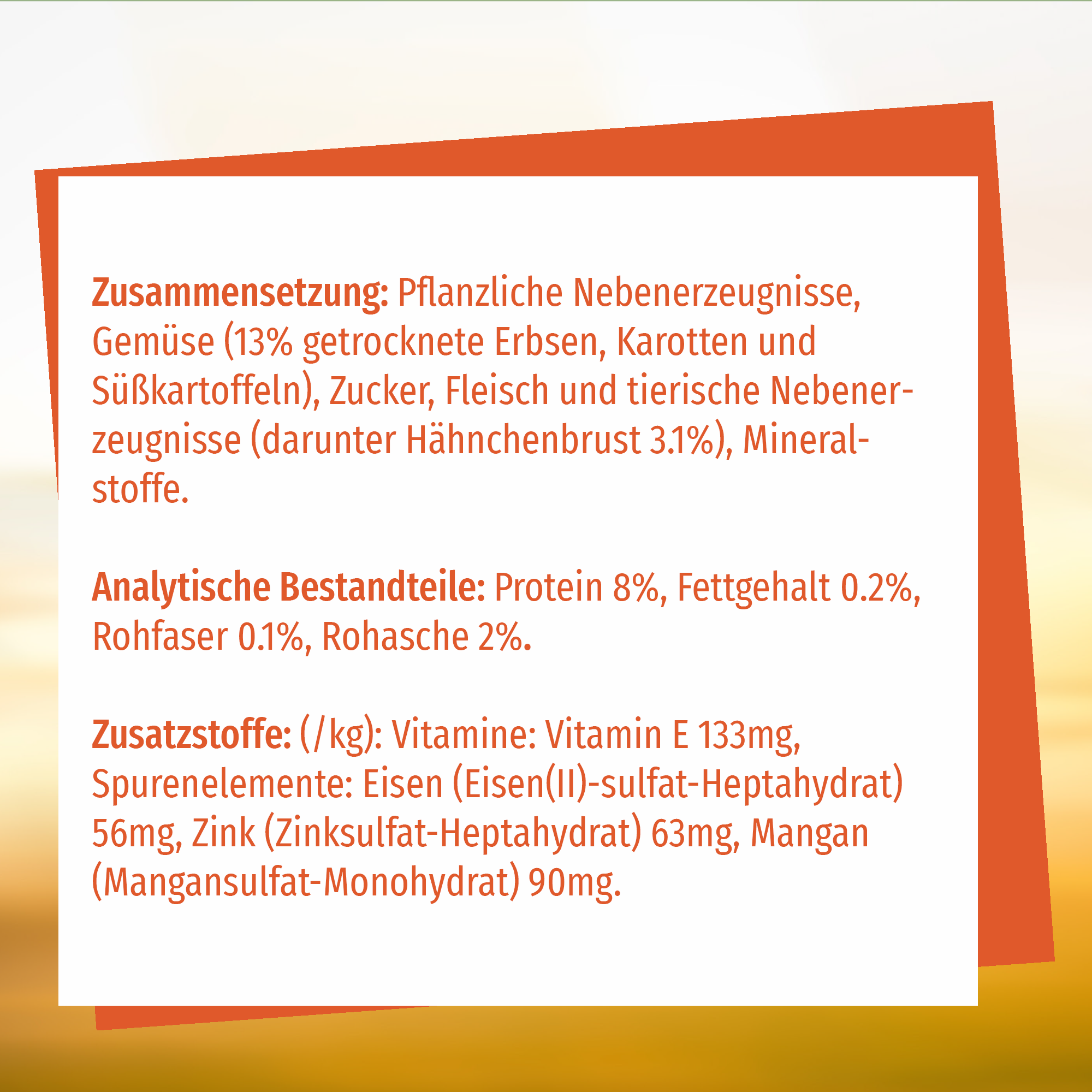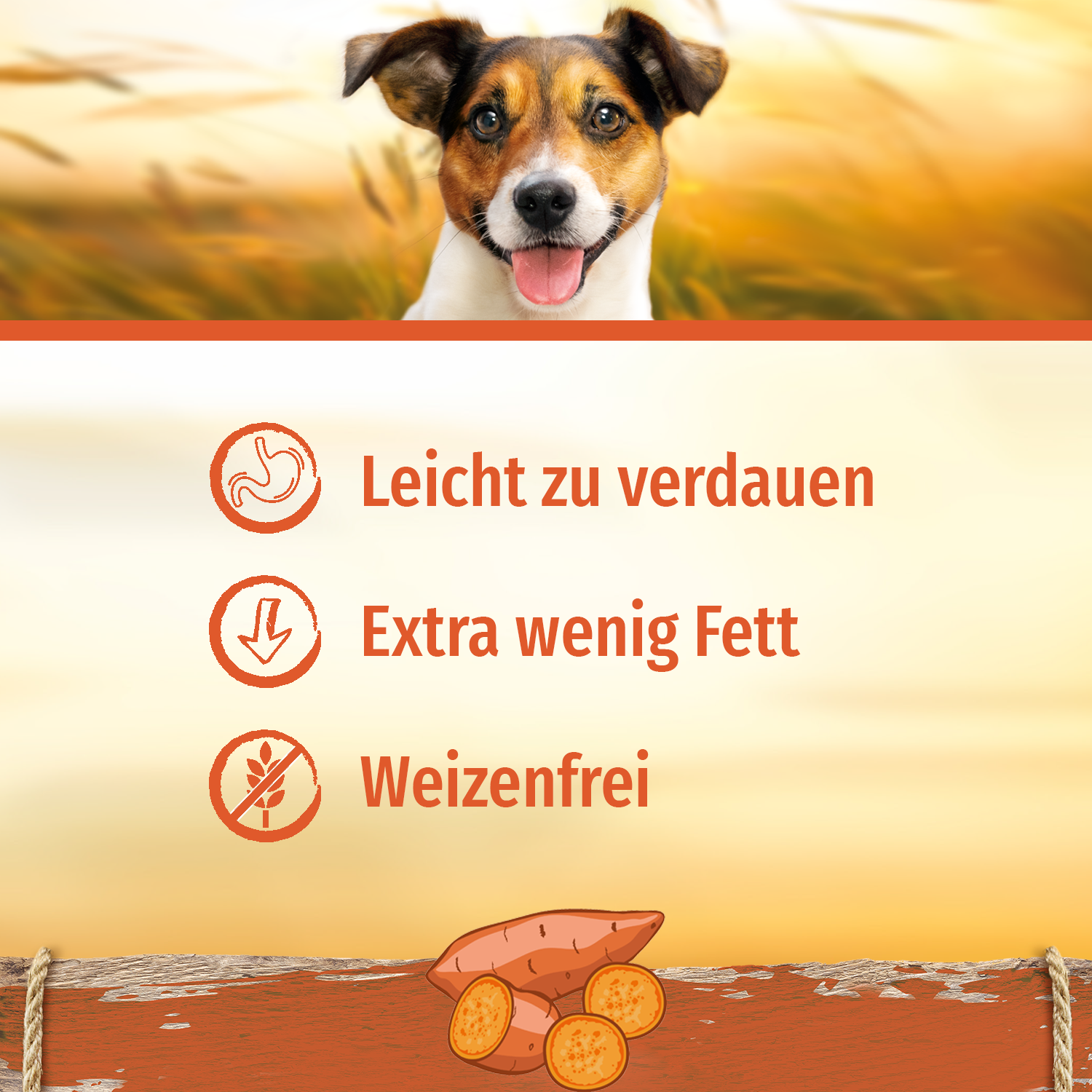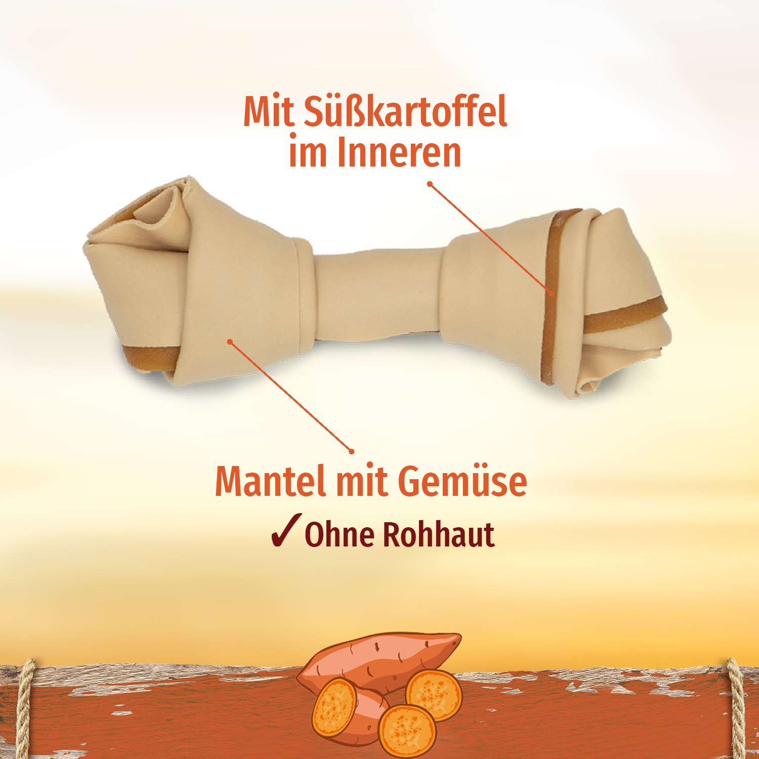 The reward snack with sweet potato not only provides hours of entertainment, but it also supports your dog's dental hygiene in a natural way: while your sweet furry friend chews on the bone, their teeth are mechanically abraded and plaque is effectively removed.