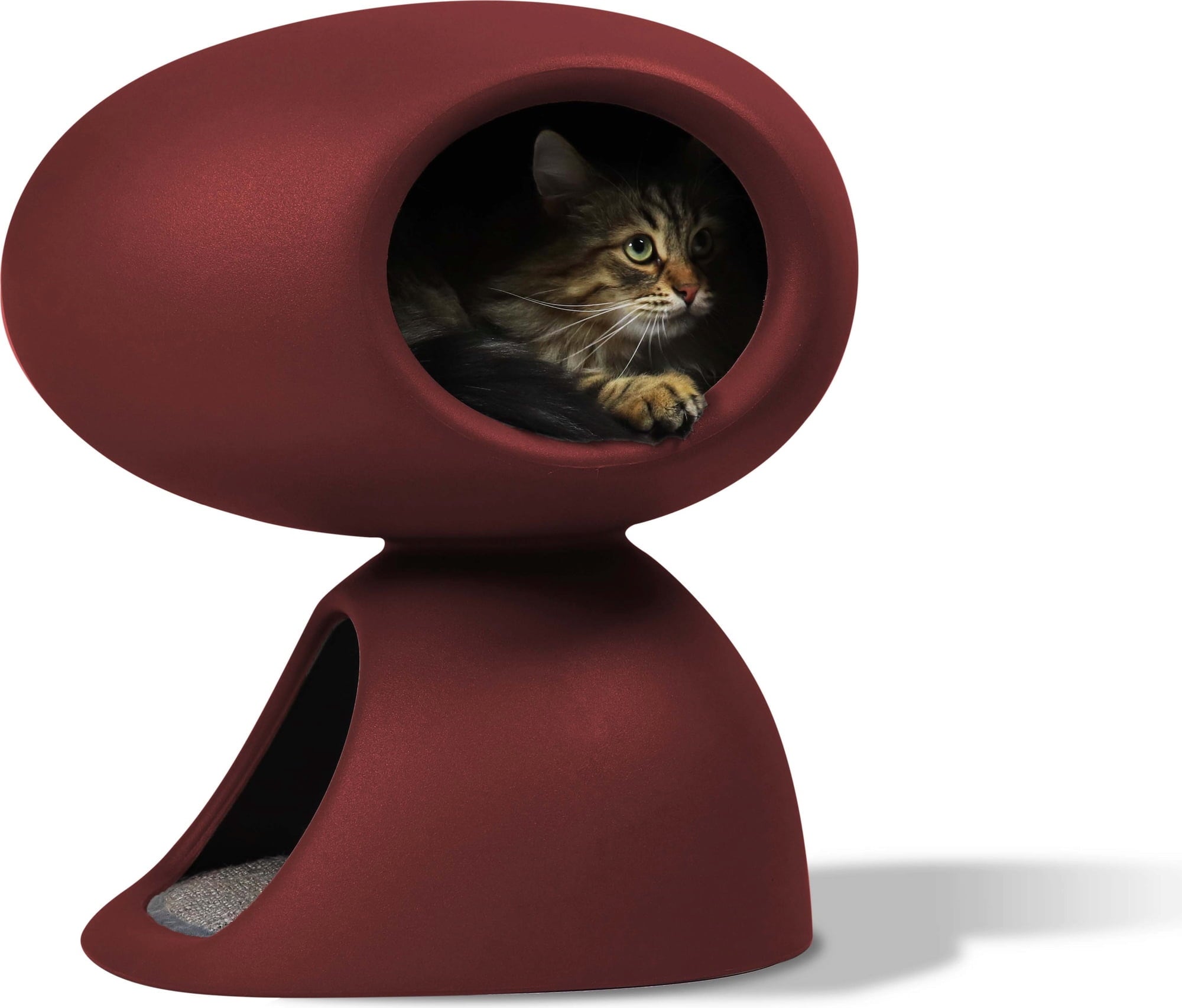 A great designer retreat for your kitty. Cat Cave resembles two rounded stones stacked on top of each other. The lower cave comes with a scratching mat. The upper cave has a soft cushion where your kitty can relax and enjoy the view.