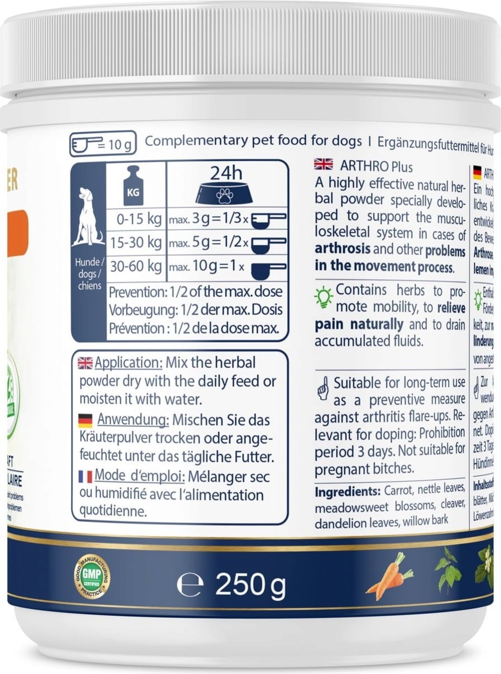 Give your darling back the joy of movement. ARTHRO Plus is fed to support osteoarthritis and other movement problems. It can strengthen the entire musculoskeletal system and the strength of the joints. With natural pain-relieving ingredients.
