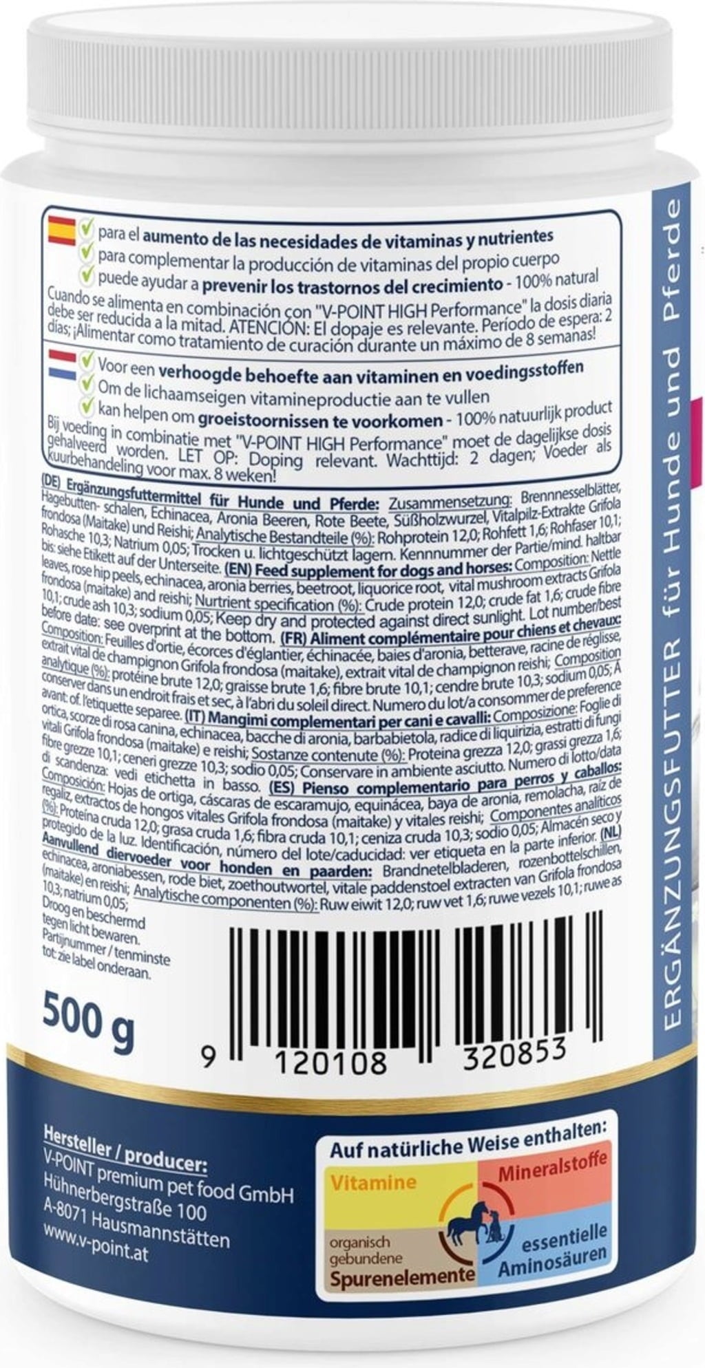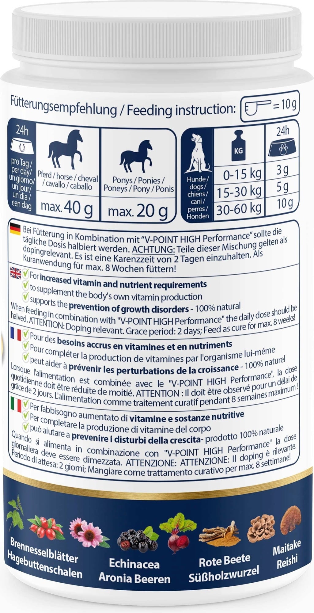 V-POINT VITAMIN Booster - Vital Mushroom and Premium Herbal Powder for Dogs and Horses, 500 g