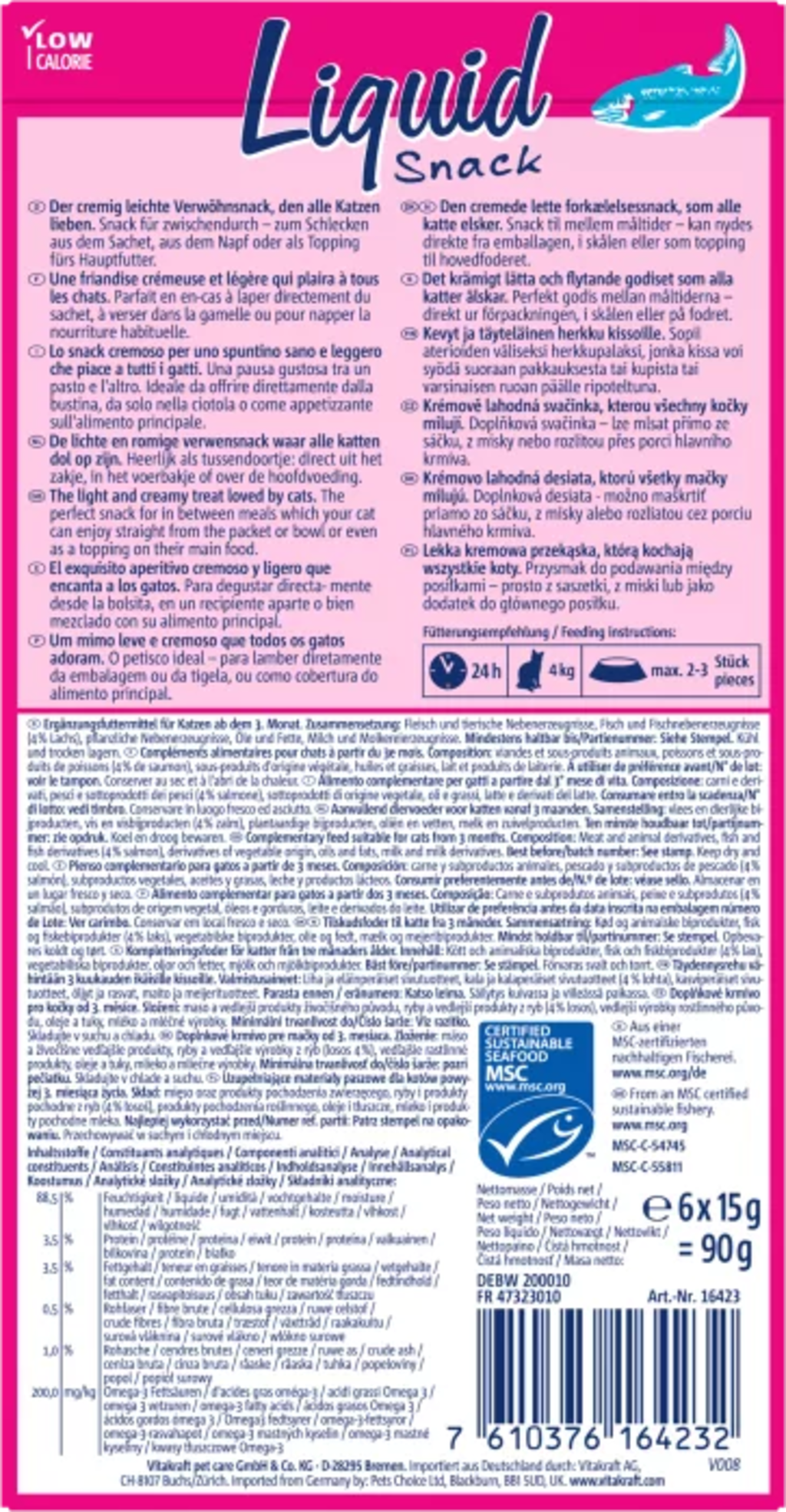 Vitakraft Liquid Cat Snack by Vitakraft, Salmon & Omega 3 (90 g)