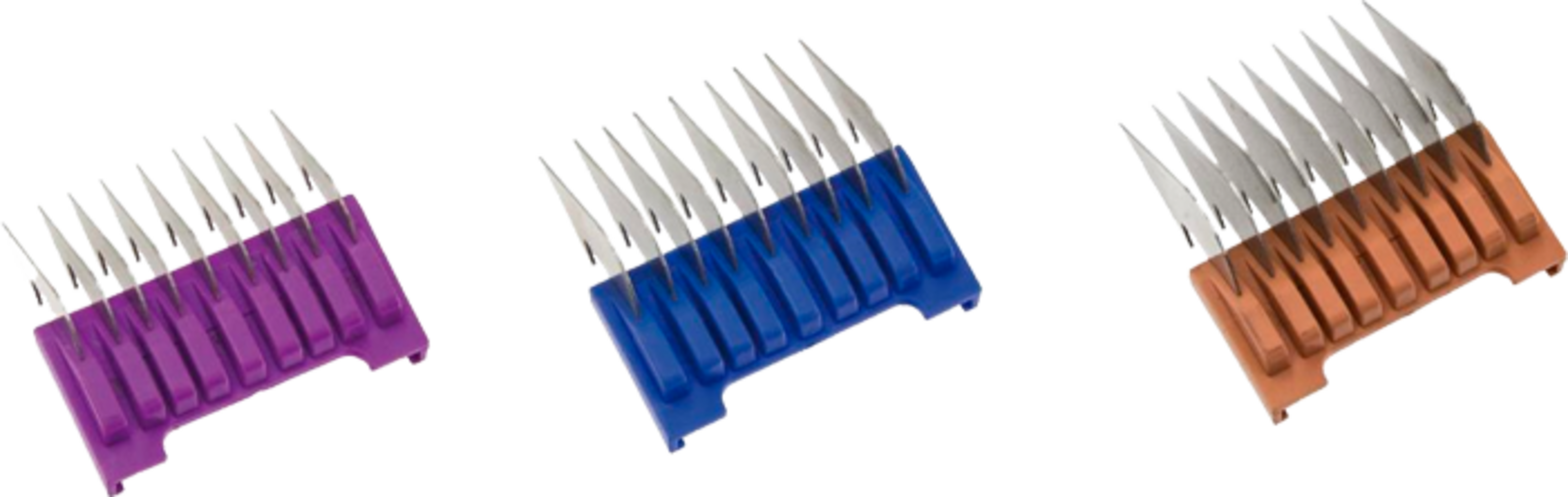These stainless steel push-on combs have been specially developed for WAHL Super Groom, Creativa and Bravura cutting sets.