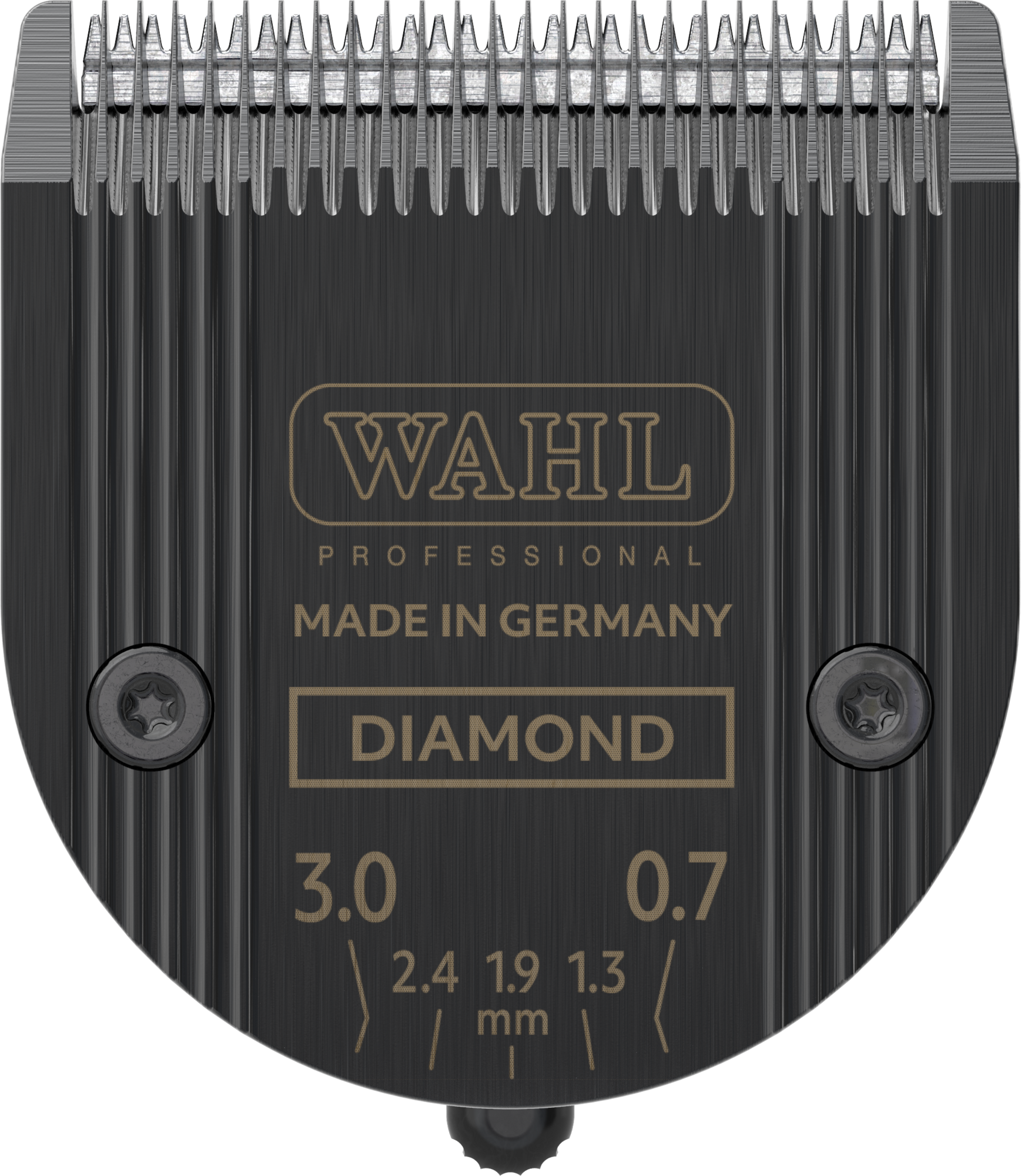 This Diamond Blade is a professional interchangeable clipper blade made of stainless steel with a 46 mm cutting comb width and 0.7-3 mm cutting length. The blade set has a special Diamond-Like carbon coating, which gives it diamond-like properties with a longer service life, a higher degree of hardness and excellent wear resistance. Incredibly easy to clean, completely rust-free and up to 40 times more resistant than its counterparts.
