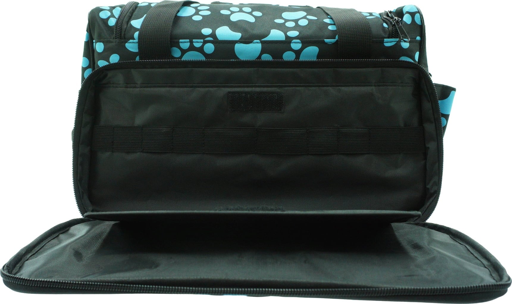 This practical and versatile bag is ideal to keep your pet's grooming accessories. A large main compartment and two additional compartments without fasteners are spacious enough for brushes, clippers and other accessories. Additional pockets on the outside offer room to organise smaller items. For instance, one of the outer pockets has a scissor holder, another can be closed with a zip and you can quickly put away little odds and ends in the practical side pockets.